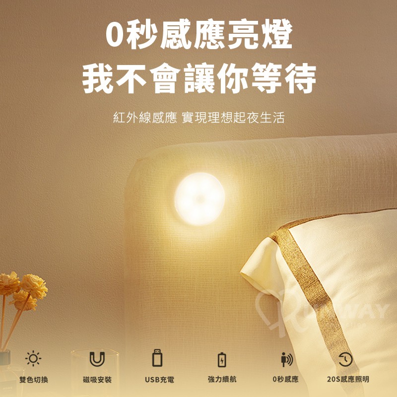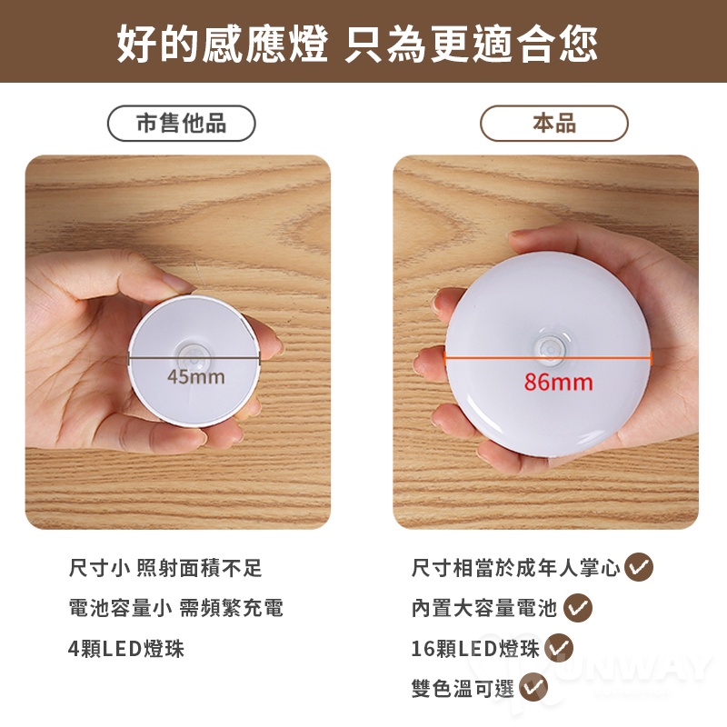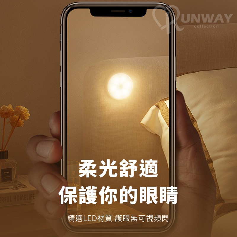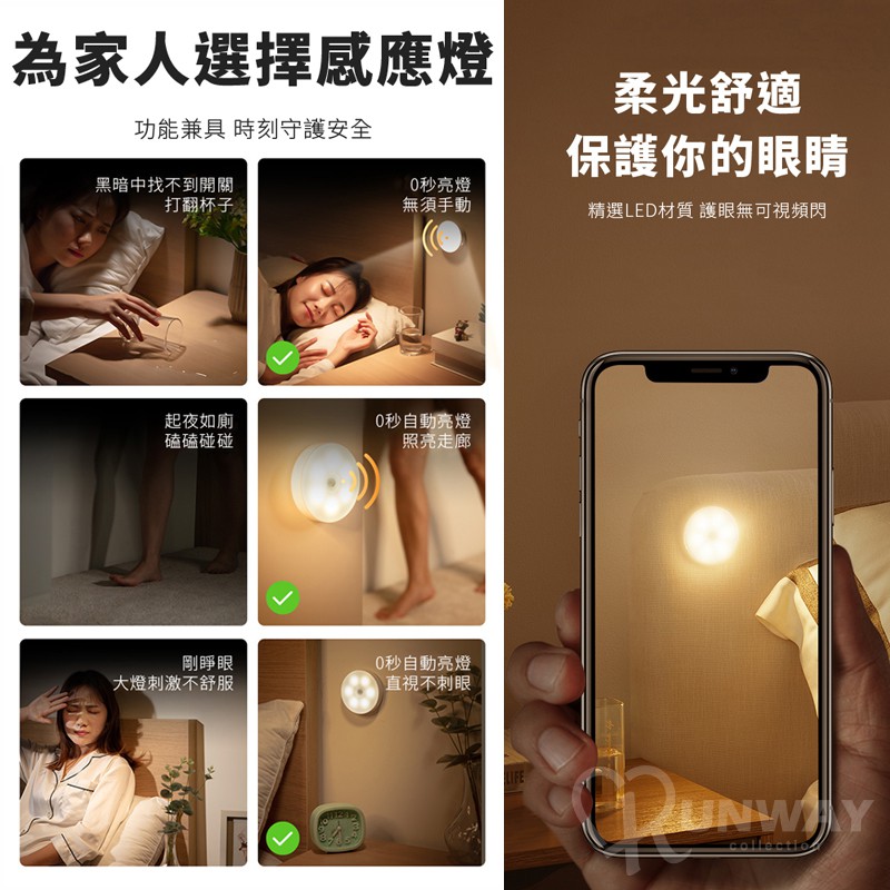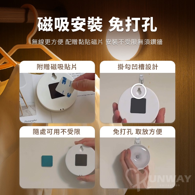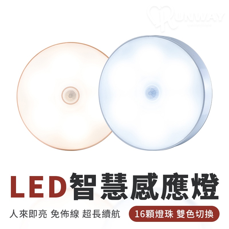 升級款16燈珠 LED 感應燈 暖光白光可切換 USB 充電 磁吸式小夜燈 衣櫃 衣櫥 燈 夜燈 人體感應燈 自動感應燈磁吸智慧感應燈,雙色燈切換Runway Collection
