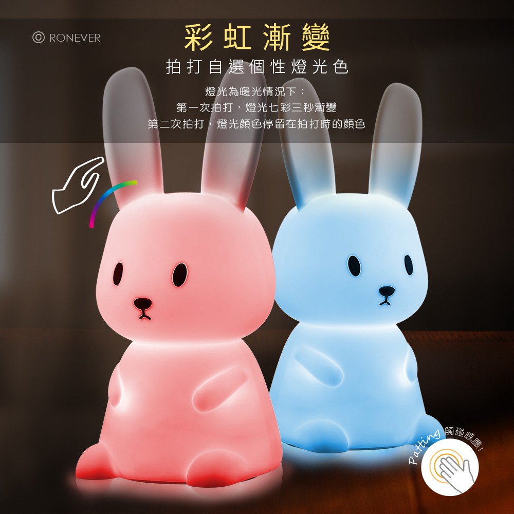 RONEVER PC393 / 小兔子矽膠拍拍燈 氣氛燈 床頭燈 舒壓小物 交換禮物PC393 小兔子RONEVER 官方品牌館