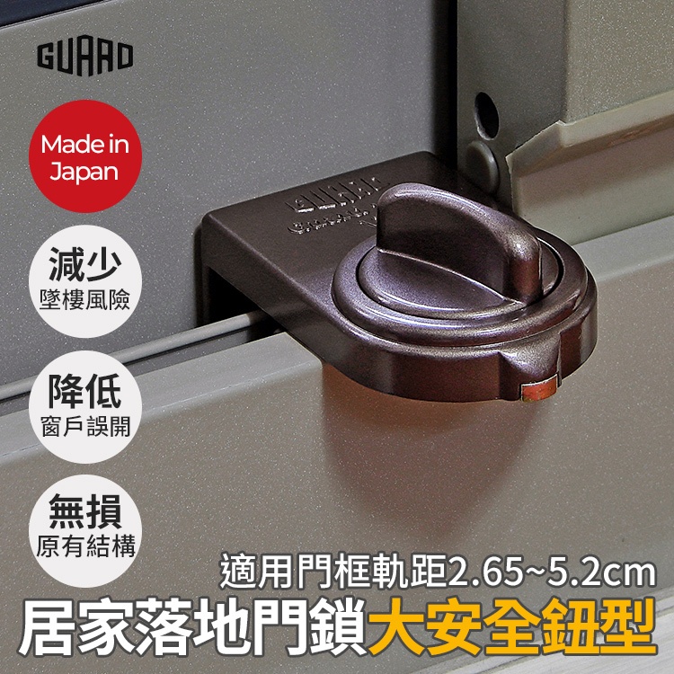 【全站最高折1250元】GUARD 兒童安全落地門鎖 大安全鈕型_棕 防墜鎖 防開鎖 落地門防開鎖 防盜鎖 門窗鎖1入|2入Door Hardware & LocksSHCJ生活采家-石墨烯炒鍋熱銷NO.1/給皂機/淨水過濾/家用收納