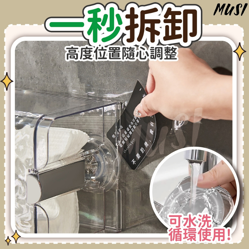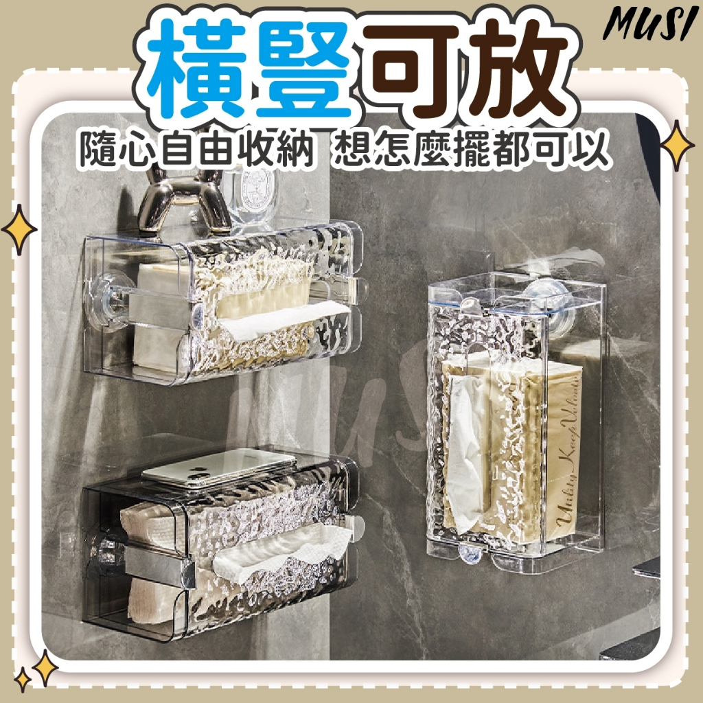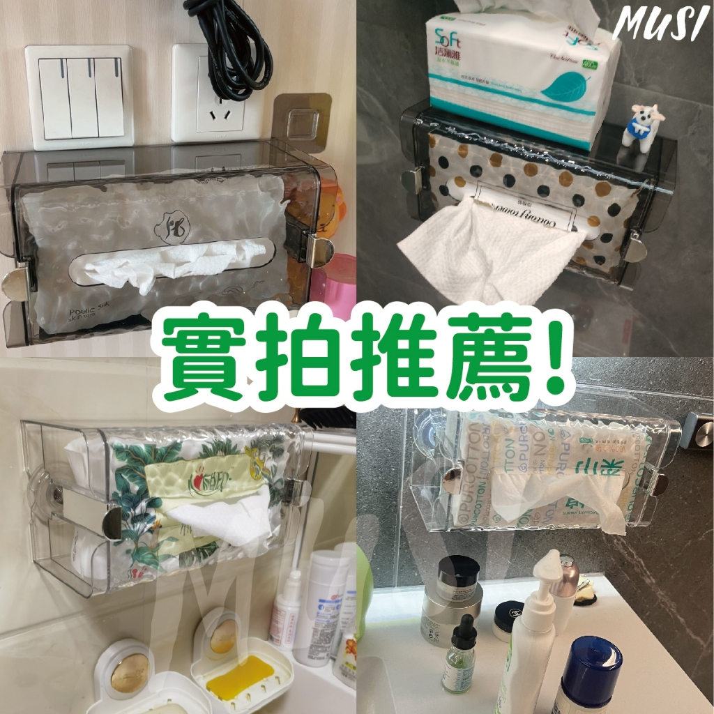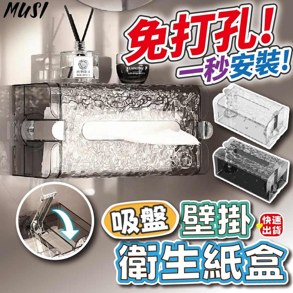 [隔日發貨]面紙盒 衛生紙盒 紙巾盒 免打孔 一壓即吸牆 面紙盒壁掛 衛生紙收納 廚房紙巾盒 浴室 廚房吸盤壁掛衛生紙盒-透明 現貨|吸盤壁掛衛生紙盒-透明黑 現貨Tissue HoldersMUSI 口罩&包包帽子 專賣