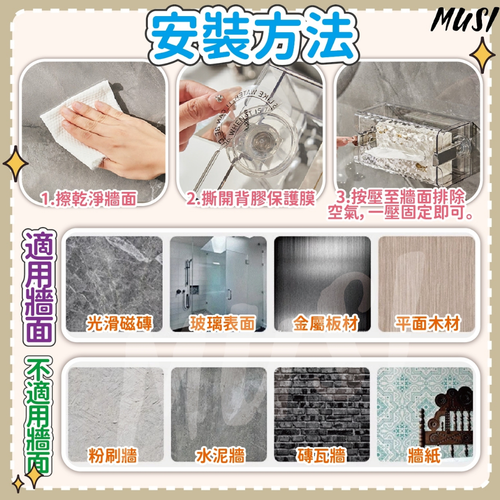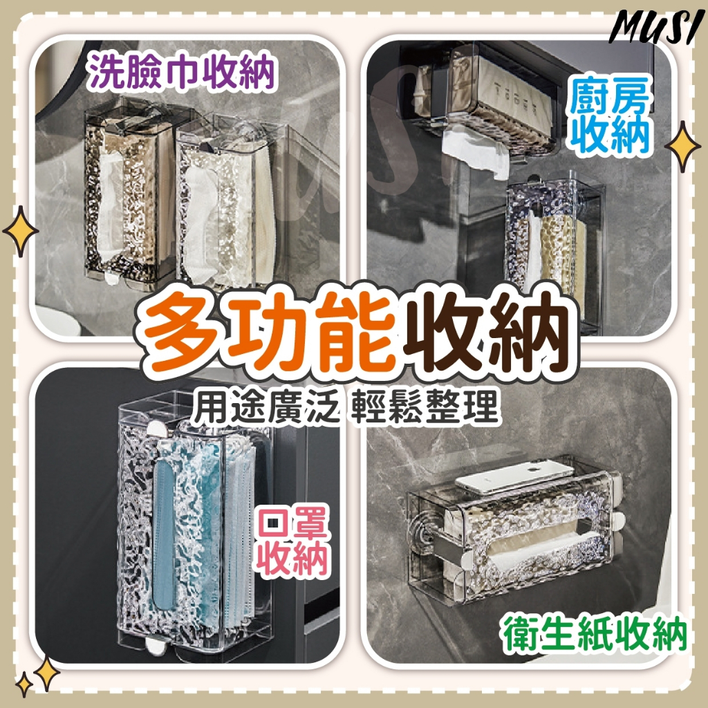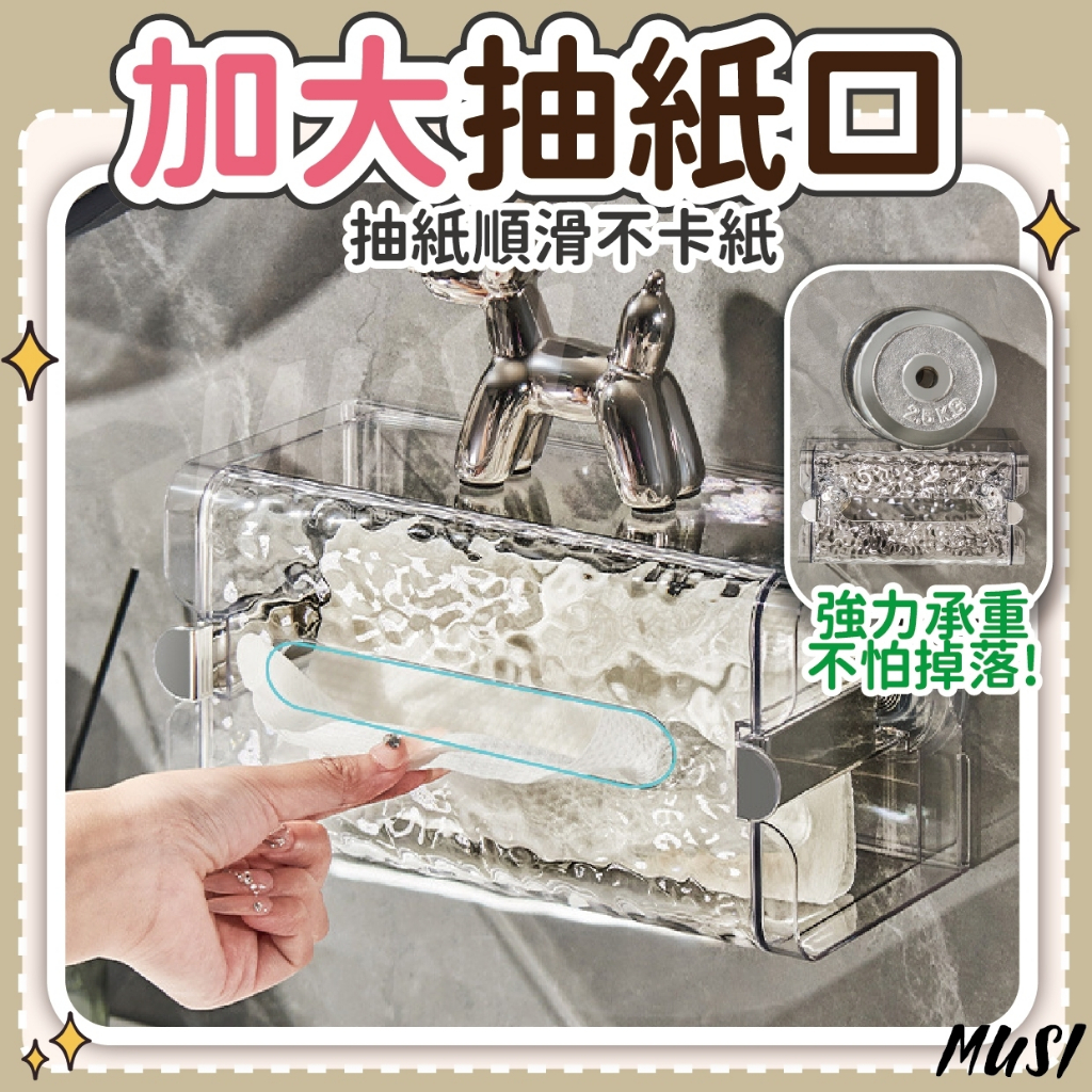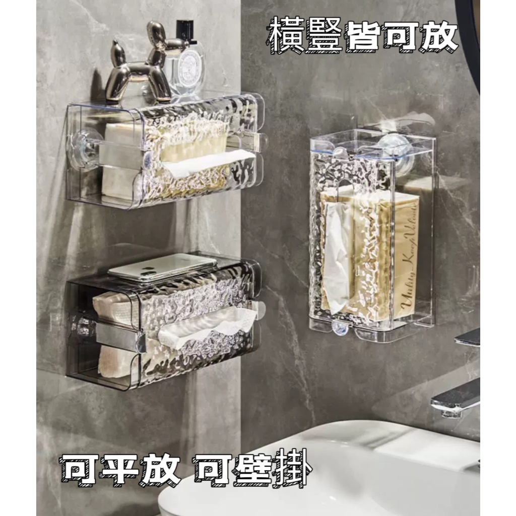 [隔日發貨]面紙盒 衛生紙盒 紙巾盒 免打孔 一壓即吸牆 面紙盒壁掛 衛生紙收納 廚房紙巾盒 浴室 廚房吸盤壁掛衛生紙盒-透明 現貨|吸盤壁掛衛生紙盒-透明黑 現貨Tissue HoldersMUSI 口罩&包包帽子 專賣
