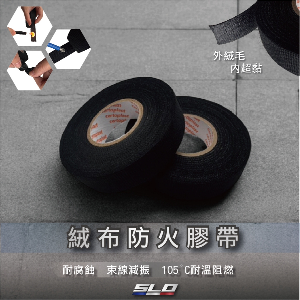 【絨布防火膠帶】 線路固定膠帶 汽車音響膠帶 耐高溫膠帶 電線整理 電線收納 絨布貼 整線膠帶 耐高溫 防火 SLO絨布防火膠帶/捲Industrial Adhesives & TapesSLO 速辰汽機車精品旗艦館