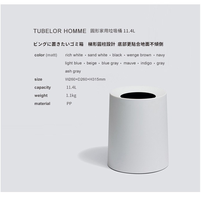 【日本 ideaco】圓形家用垃圾桶11.4L 純色 木紋 柚木紋 橡木紋 多款可選白|黑|淺藍|藍灰|米白|岩灰|靛藍|沙白|柚木紋|橡木紋|專屬原木垃圾桶蓋|灰白Trash & Recycling Binsnicegoods 生活好東西