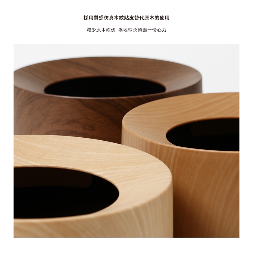 【日本 ideaco】圓形家用垃圾桶11.4L 純色 木紋 柚木紋 橡木紋 多款可選