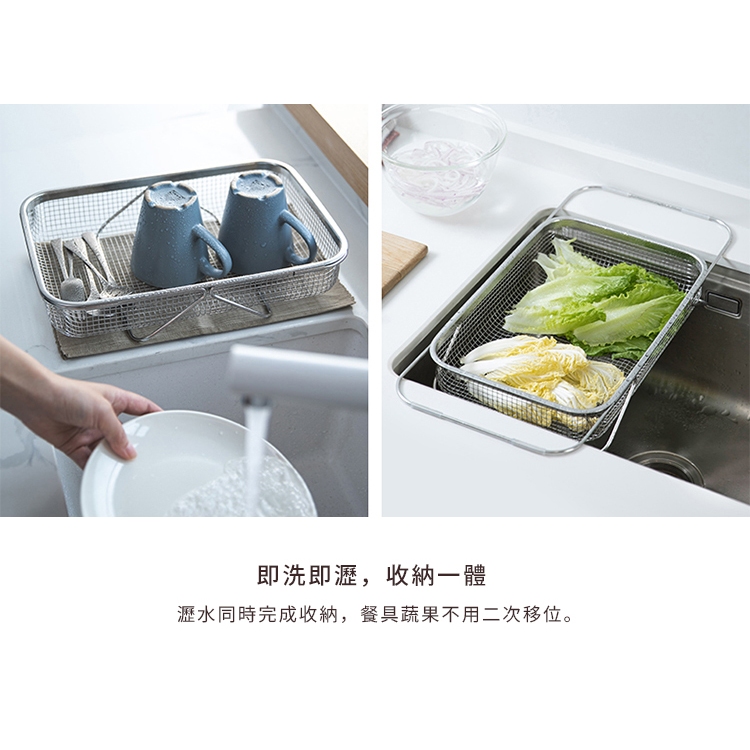 【日本霜山】304不鏽鋼水槽用伸縮式蔬果/餐具瀝水籃-多款可選大|小Kitchen Racksnicegoods 生活好東西