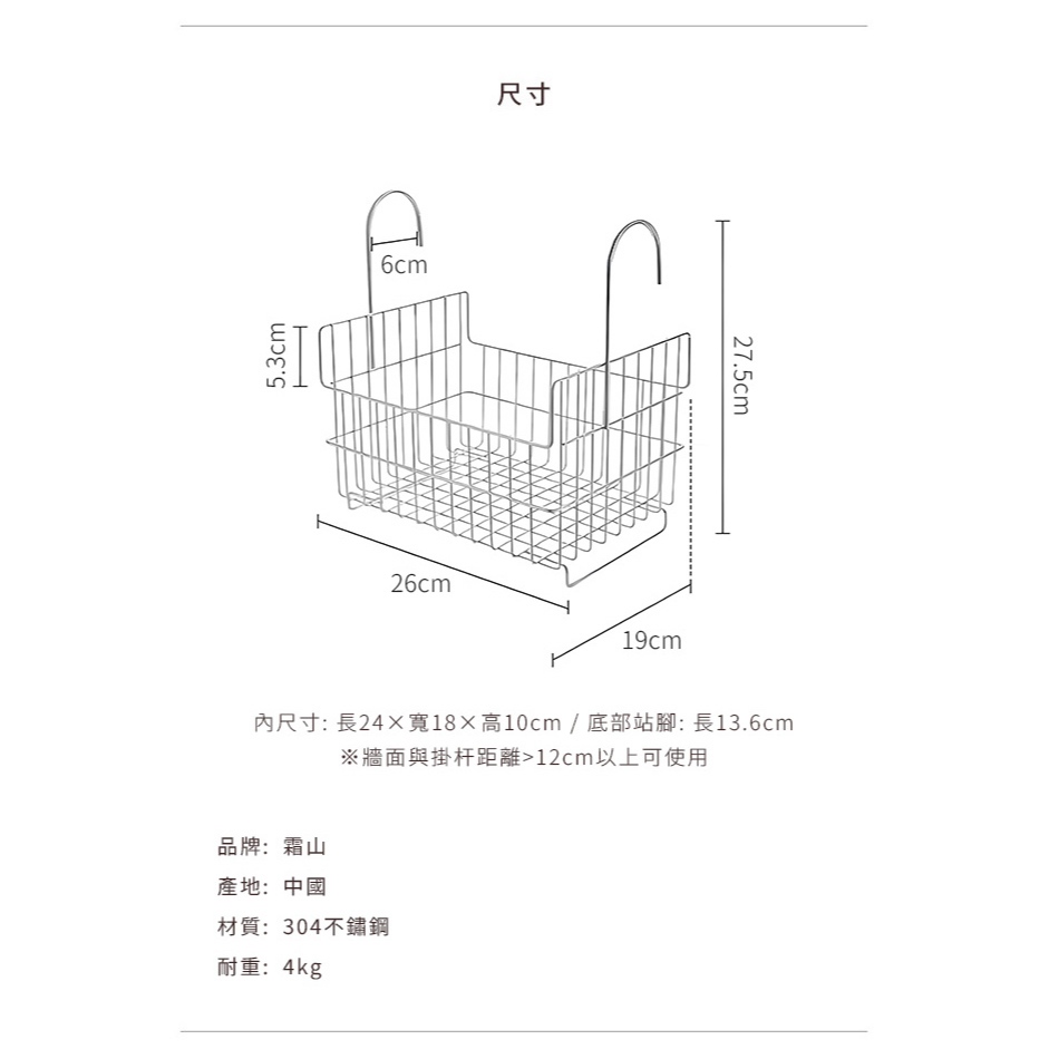 【日本霜山】可掛式304不鏽鋼浴室置物籃/收納掛籃【日本霜山】可掛式304不鏽鋼浴室置物籃/收納掛籃Othersnicegoods 生活好東西