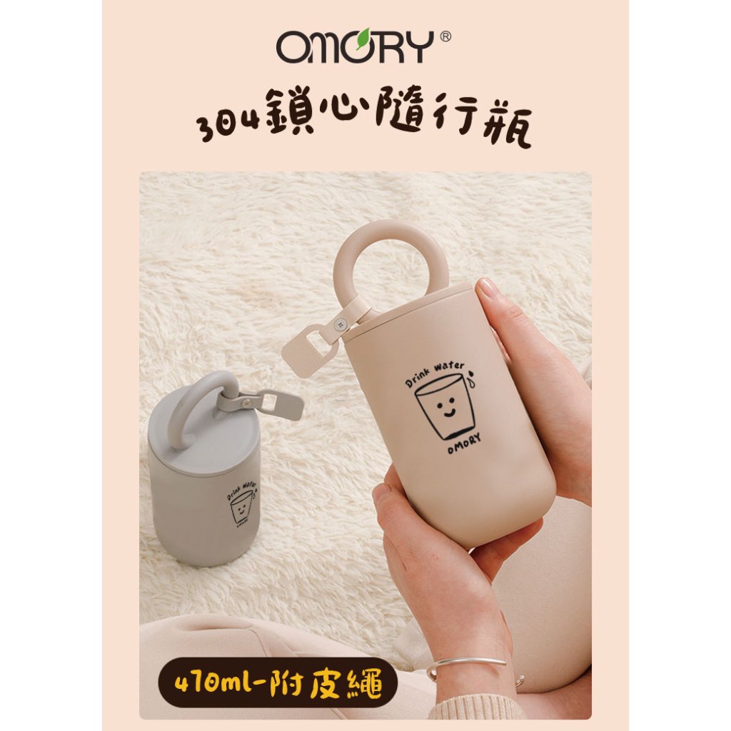 • 【OMORY】304不鏽鋼鎖心隨行瓶470ml-附皮繩
