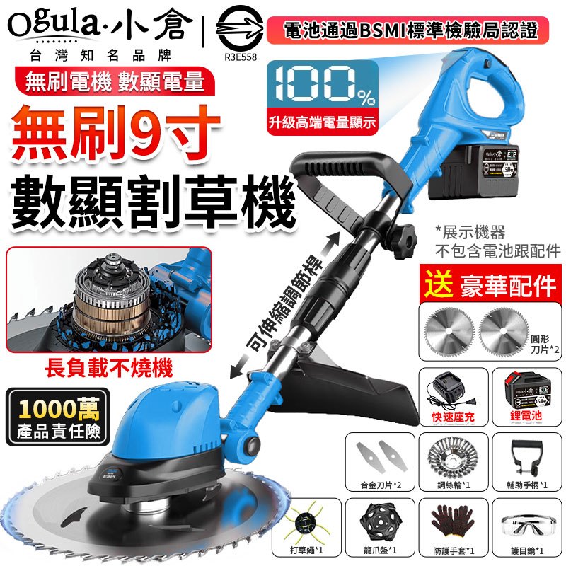 【Ogula小倉】割草機 除草機 無刷9寸割草機【送鋼絲輪+龍爪盤】帶電量顯示 打草繩 大功率園林草坪修剪機-品牌保固無刷9寸數顯款【裸機】贈豪華大禮包|無刷9寸數顯款【十節一電】贈豪華大禮包|無刷9寸數顯款【十節兩電】贈豪華大禮包|無刷9寸數顯款【十五節一電】贈豪華大禮包|無刷9寸數顯款【十五節兩電】贈豪華大禮包|無刷9寸數顯款【背負鋰電瓶】贈豪華大禮包Lawn MowersOgula小倉【官方旗艦店】