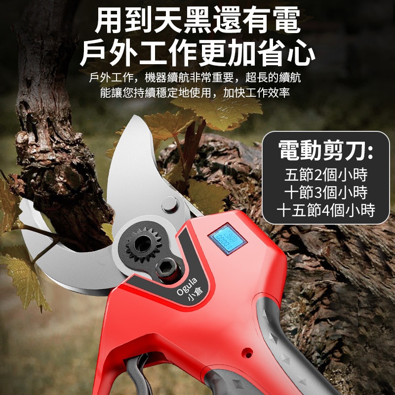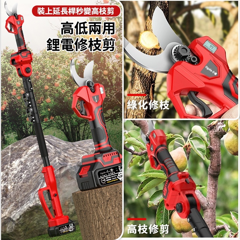 【Ogula小倉】電動剪刀 電動修枝剪 高枝剪 園藝剪刀 電量顯示 可接2.5米伸縮桿 園林樹枝剪 果樹剪 800W功率無刷數顯款【裸機】贈全套豪華配件+折疊鋸|無刷數顯款【十五節一電】豪華配件+折疊鋸|無刷旗艦款【裸機】贈全套豪華配件+折疊鋸|無刷旗艦款【五節一電】贈豪華配件+折疊鋸|無刷旗艦款【十節一電】贈豪華配件+折疊鋸|無刷數顯款【十節一電】贈豪華配件+折疊鋸|【加長桿1.3-2.5m】請選擇賣家宅配|無刷數顯款【五節一電】贈豪華配件+折疊鋸|無刷數顯款【五節兩電】贈豪華配件+折疊鋸|無刷數顯款【十節兩電】贈豪華配件+折疊鋸|無刷數顯款【十五節兩電】豪華配件+折疊鋸|無刷高枝剪【五節一電】延長桿▶限宅配箱購|無刷高枝剪【五節兩電】延長桿▶限宅配箱購|無刷高枝剪【十節一電】延長桿▶限宅配箱購|無刷高枝剪【十節兩電】延長桿▶限宅配箱購|無刷高枝剪【十五節一電】延長桿▶宅配箱購|無刷高枝剪【十五節兩電】延長桿▶宅配箱購Gardening ToolsOgula小倉【官方旗艦店】