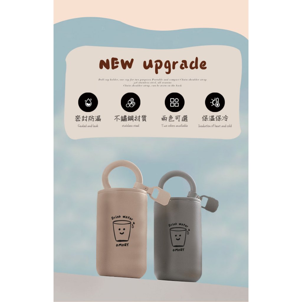 【OMORY】304不鏽鋼鎖心隨行瓶470ml-附皮繩咖|灰Water Bottles & AccessoriesOMORY 樂活美學館