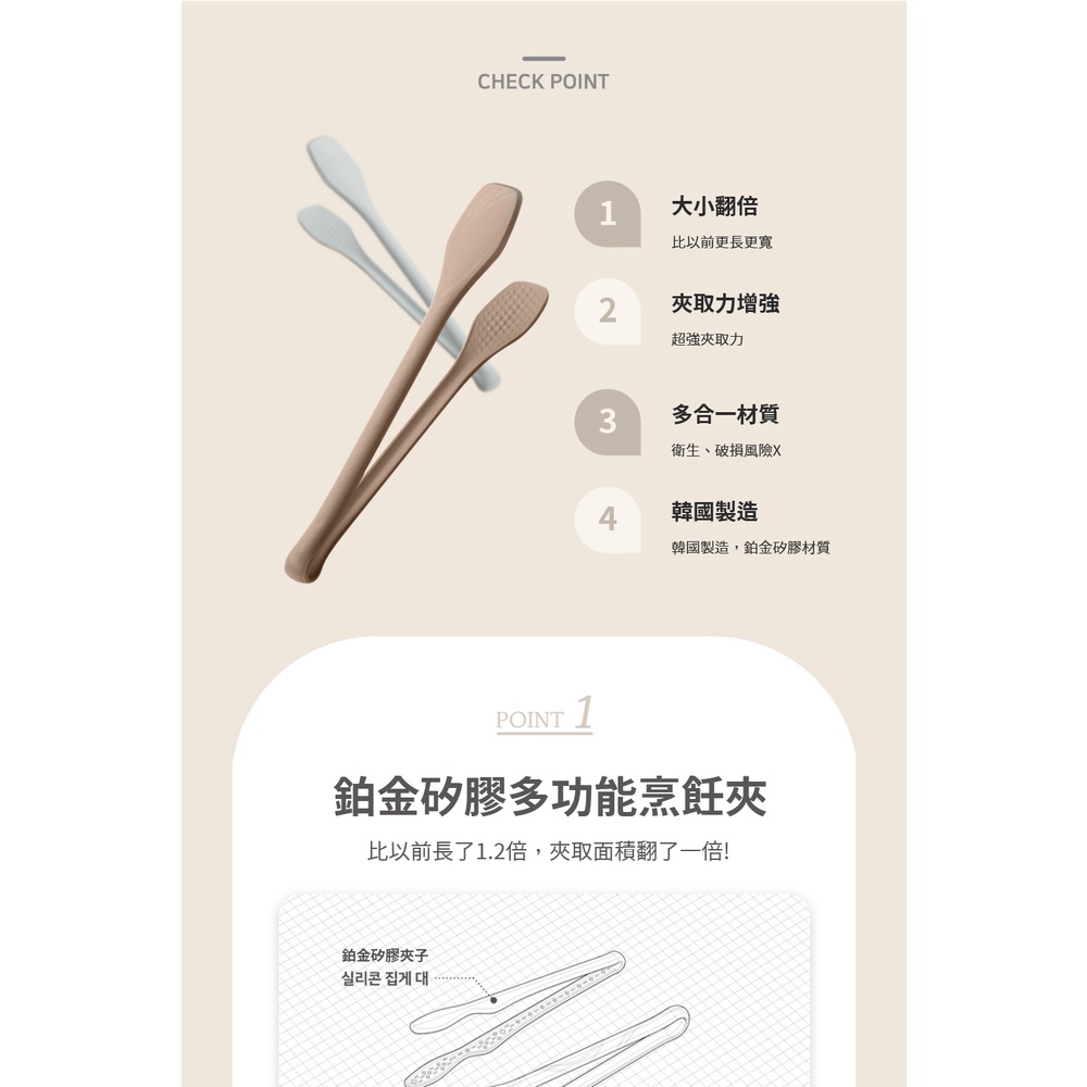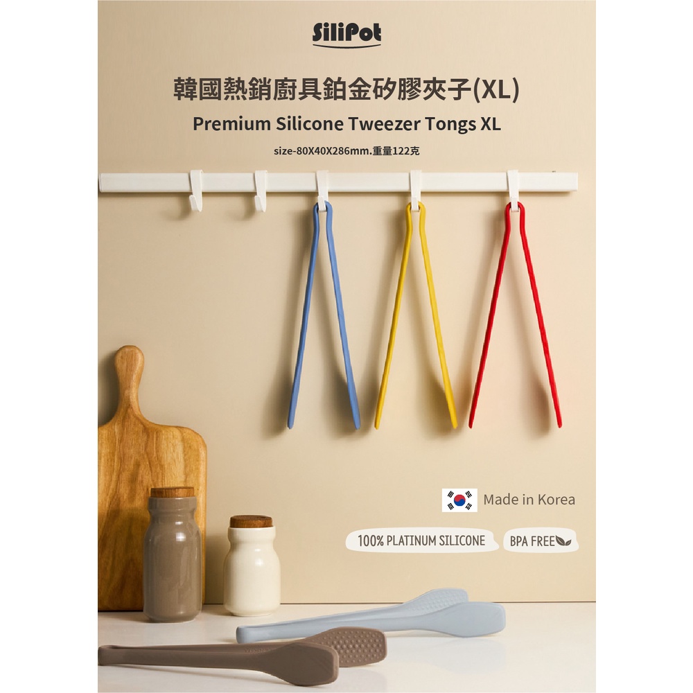 【韓國 Silipot】鉑金矽膠夾子 XL(食物夾 多用途夾子 可熱水消毒)湖水綠|伯爵棕|可可棕|莫蘭迪藍|燕麥奶|冷灰Spatulas & Cooking TweezersPomier朴蜜兒