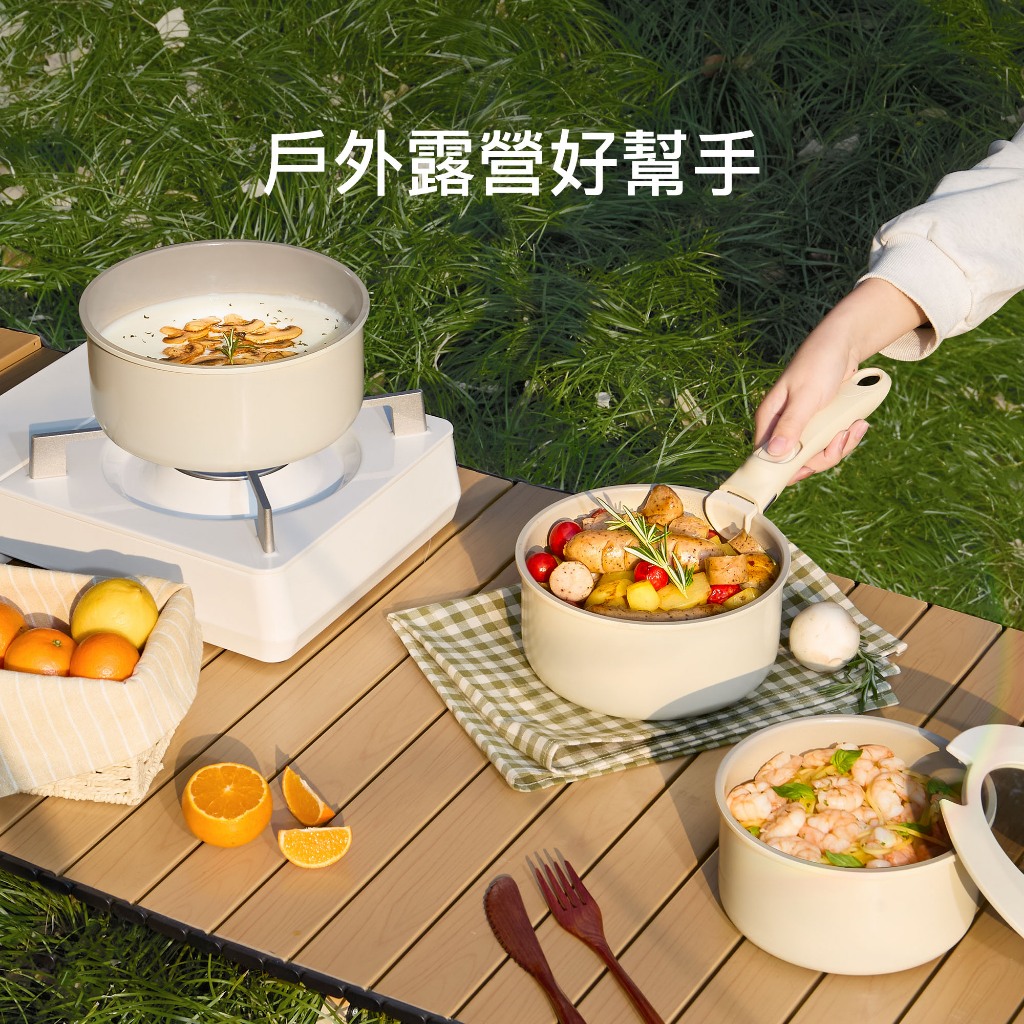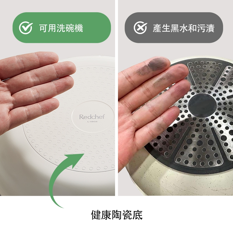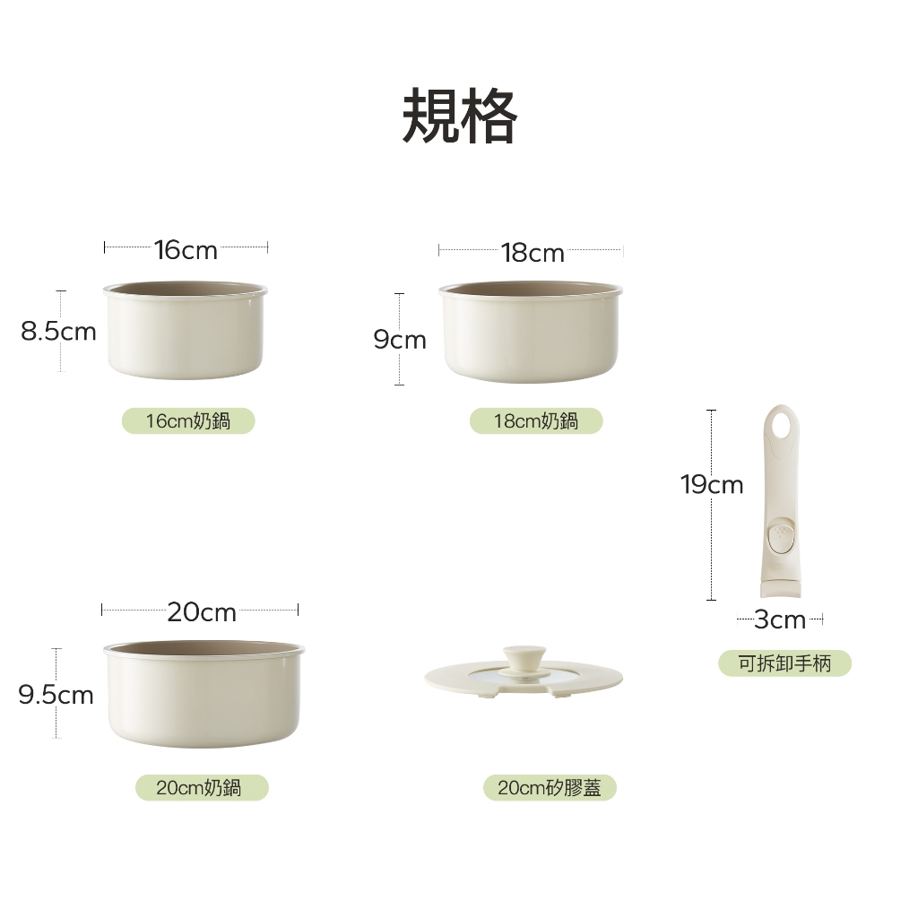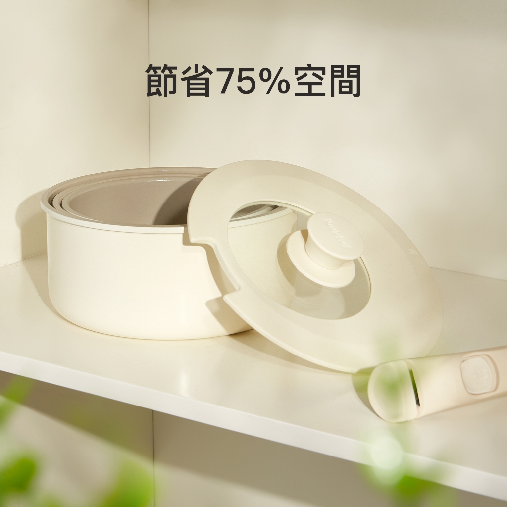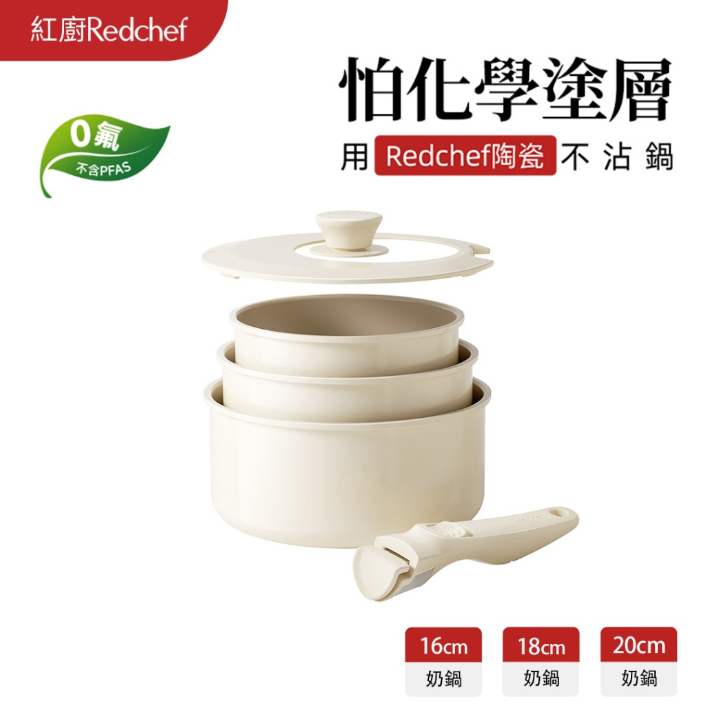 紅廚Redchef 陶瓷岩不沾奶鍋5件組湯鍋 可拆式手柄+16CM奶鍋+18cm奶鍋+20CM奶鍋+矽膠蓋 IH電磁爐適5Pcs 白色(含1件手柄)PansRedchef