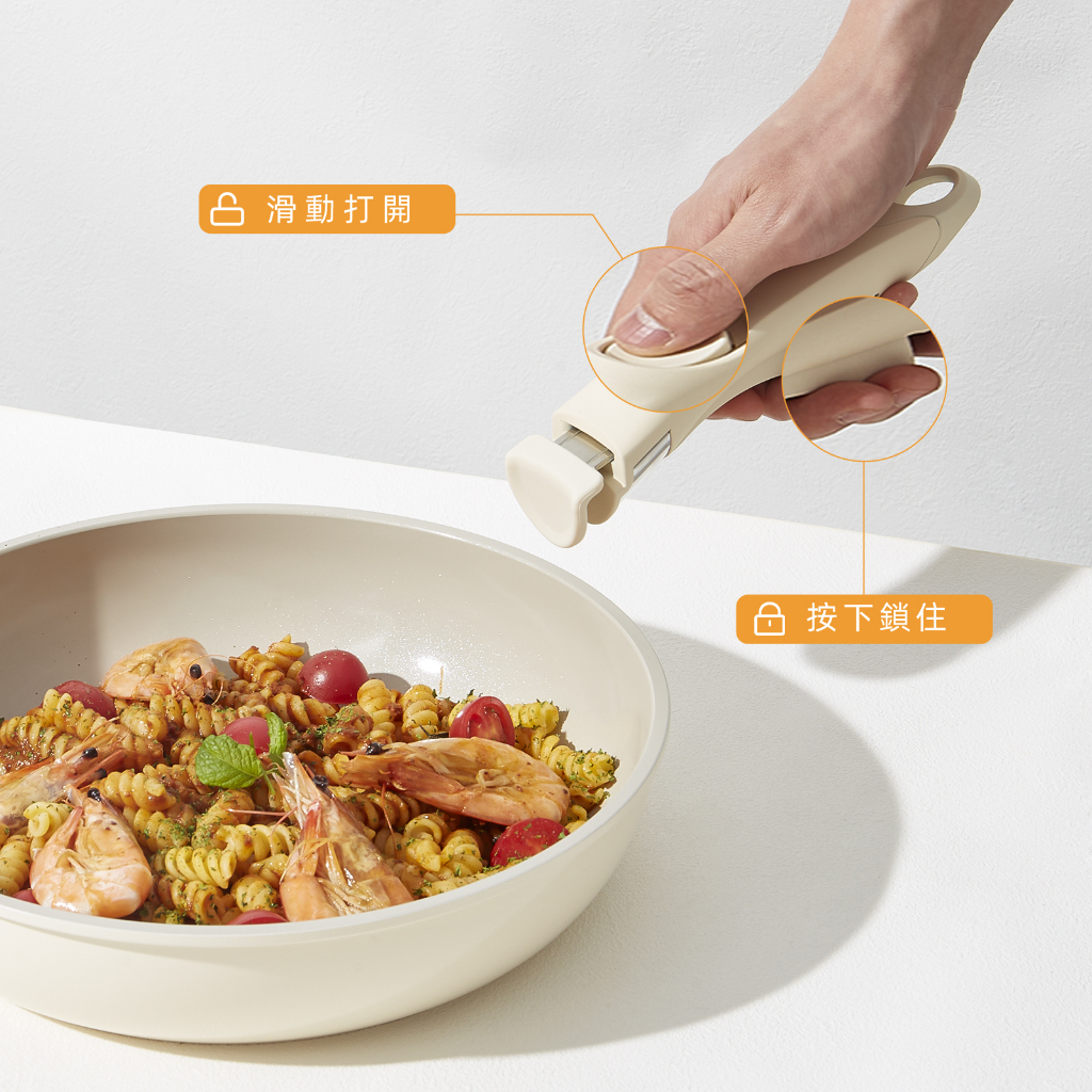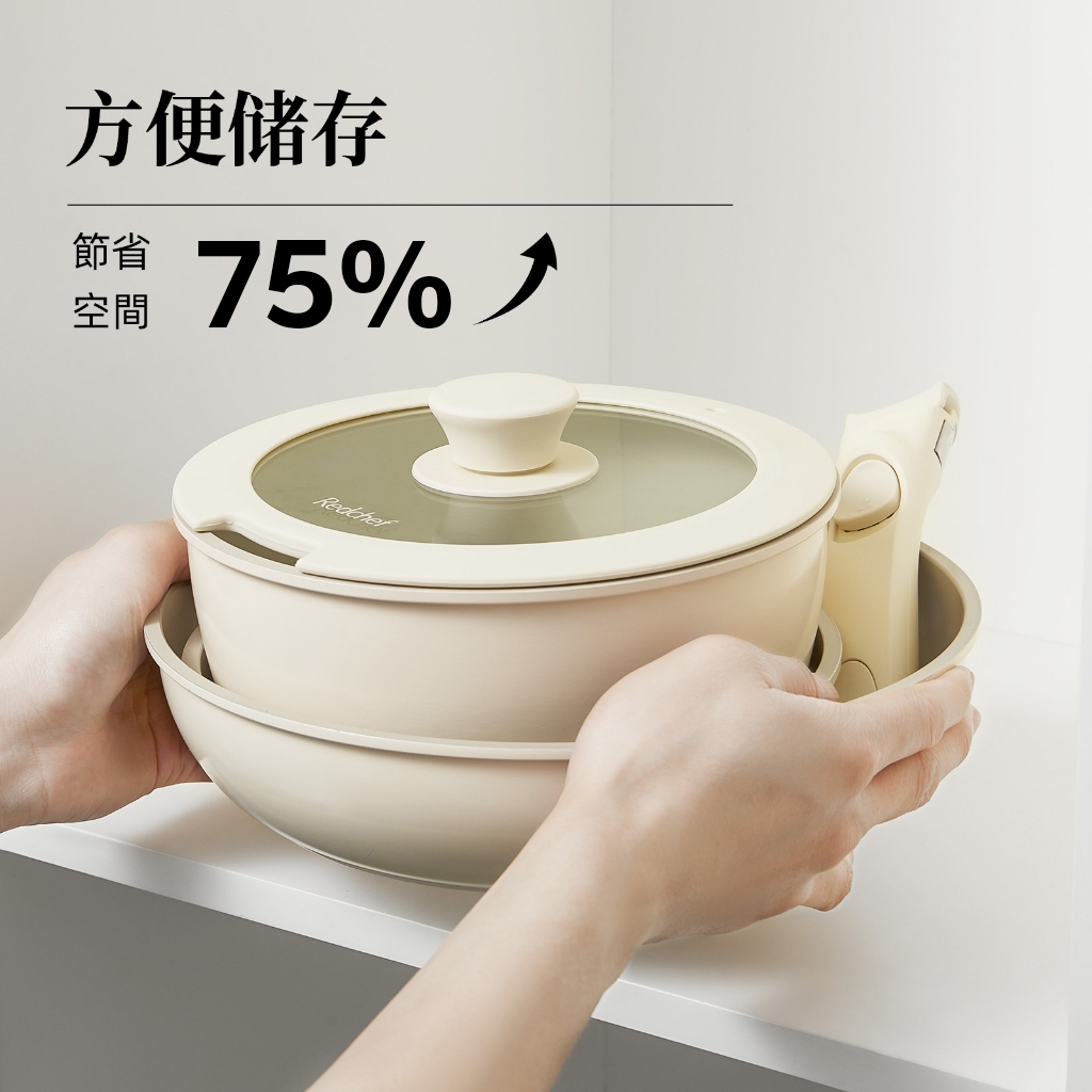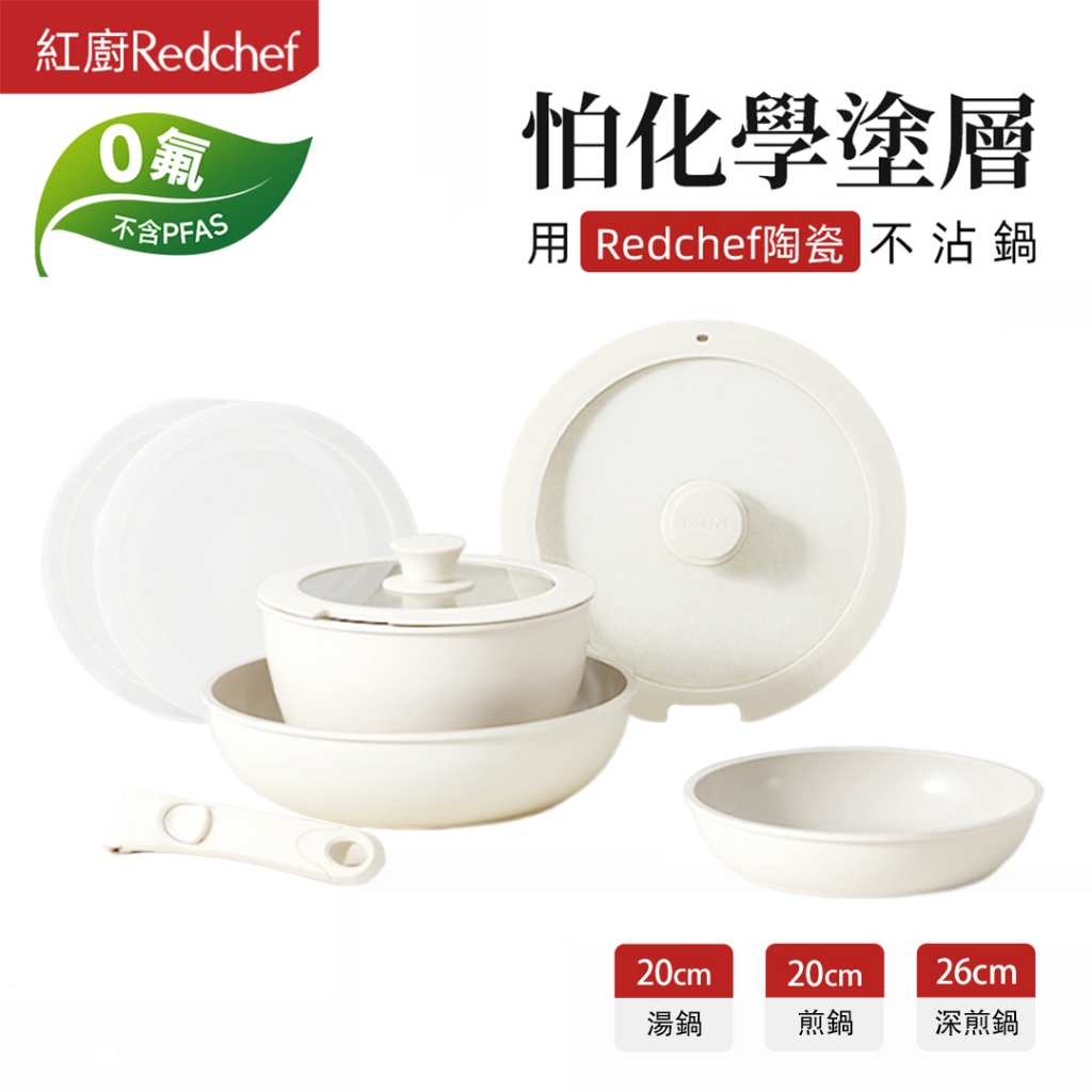 紅廚Redchef 陶瓷岩不沾鍋具8件組白色 可拆式手柄+20/26CM平底鍋/煎炒鍋+20CM奶鍋 IH電磁爐適用8Pcs白色(含1件手柄)PansRedchef
