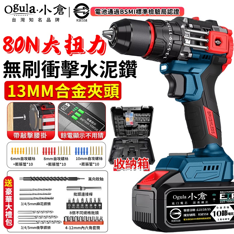 【Ogula小倉】電鑽 無刷電鑽 衝擊鑽 電動起子 水泥衝擊電鑽 80N.m大扭力鋰電鑽 13MM可鑽水泥墻混凝土13MM無刷衝擊鑽【裸機】帶電顯|13MM無刷衝擊鑽【五節一電】帶電顯|13MM無刷衝擊鑽【五節兩電】帶電顯|13MM無刷衝擊鑽【十節一電】帶電顯|13MM無刷衝擊鑽【十節兩電】帶電顯|13MM無刷衝擊鑽【十五節一電】帶電顯|13MM無刷衝擊鑽【十五節兩電】帶電顯|68VF雙速工業款【一電一充】配件+塑箱|68VF雙速工業款【兩電一充】配件+塑箱ToolsOgula小倉【官方旗艦店】