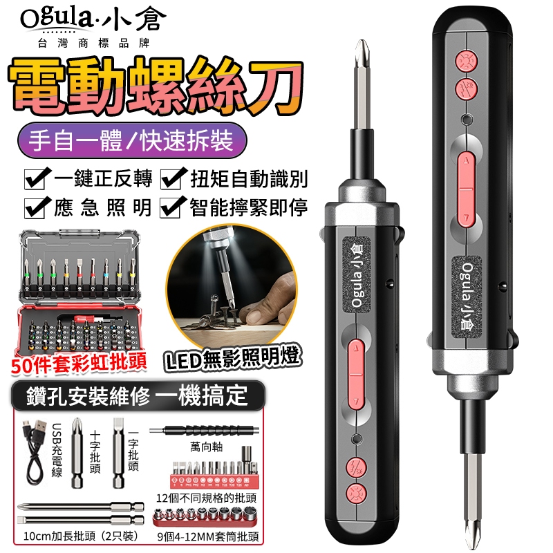 【Ogula小倉】電動螺絲刀 電動起子 電動螺絲起子 無線螺絲刀 電動起子機 多功能拆卸起擰螺絲工具套裝 附多種套頭【帶測電功能】批頭套裝+50件彩虹套裝|【帶測電功能】套筒批頭套裝ToolsOgula小倉【官方旗艦店】