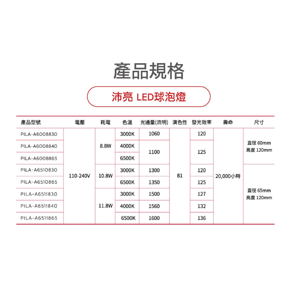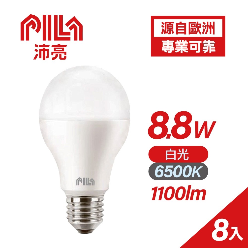 PILA 沛亮 8.8W LED燈泡 E27 3000K-黄光 4000K-自然光 6500K-白光 8入8.8W 黄光-3000K 8入|8.8W 自然光-4000K 8入|8.8W 白光-6500K 8入PHILIPS 飛利浦照明旗艦館