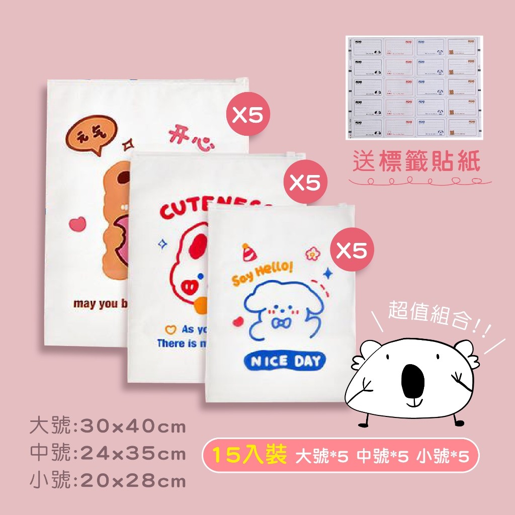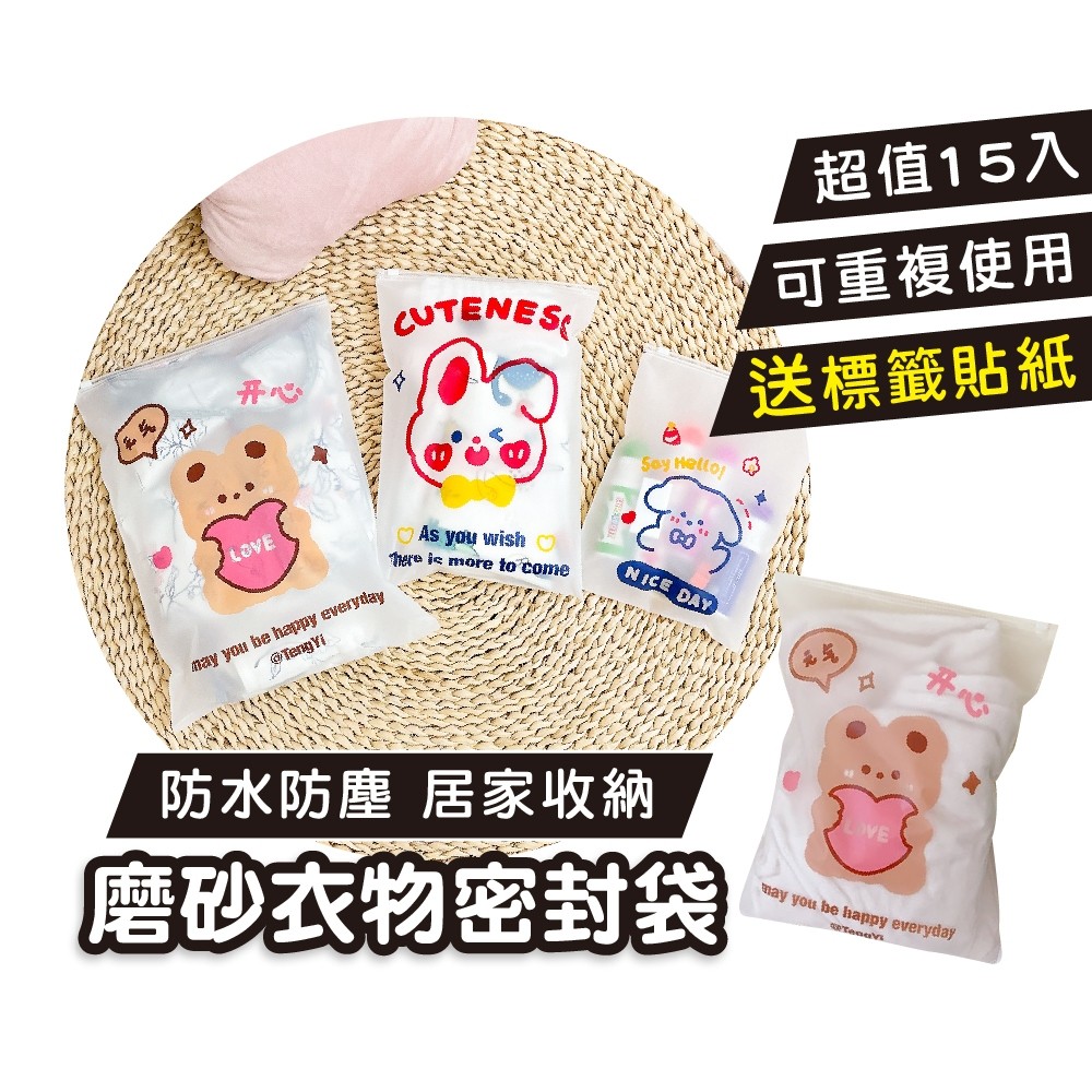 【旅行必備 三種尺寸】磨砂衣物密封袋 旅行收納袋 衣物收納袋 防水袋 磨砂夾鏈袋 拉鏈袋 防塵袋 磨砂袋 密封袋15入組合包(5大5中5小)OthersPeNi培婗