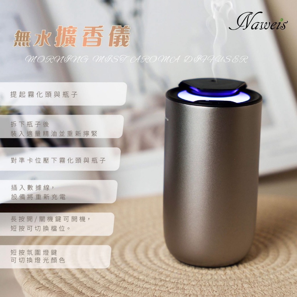 享原廠保固+發票 鋁合金七彩燈光無水精油香薰機 usb擴香儀 香氛機 芳香機 無水擴香儀 擴香儀 薰香機 擴香器曦光金(贈送2個精油瓶)含噴嘴|靜夜黑(贈送2個精油瓶)含噴嘴|星雲灰(贈送2個精油瓶)含噴嘴|零件區(噴嘴含空瓶)不含機器Diffusers, Humidifiers & Oil BurnersNaweis納唯詩精油