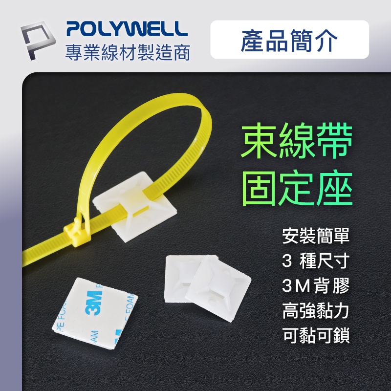 POLYWELL 束線帶固定座 100入 工業級 可黏貼 可鎖螺絲 寶利威爾 台灣現貨20x20mm (100入)|25x25mm (100入)|30x30mm (100入)OthersPOLYWELL寶利威爾官方旗艦店