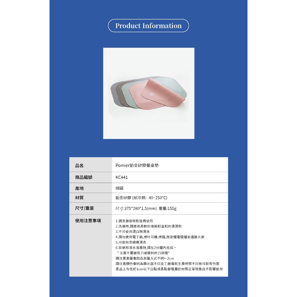【韓國 Pomier】韓國熱銷鉑金矽膠餐桌墊 隔熱防水餐墊 餐桌墊 餐盤墊 桌墊 止滑墊冷灰|豆沙粉|薄荷綠|燕麥奶|可可棕Placemats & CoastersPomier朴蜜兒