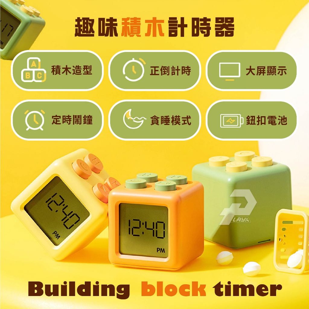 積木造型計時器 電子鬧鐘 小孩時間管理 定時器 交換禮物【黃】|【綠】|【橙】ClocksPLAY3C創意生活館