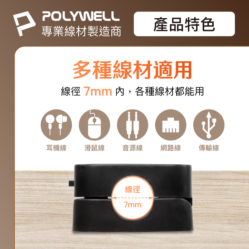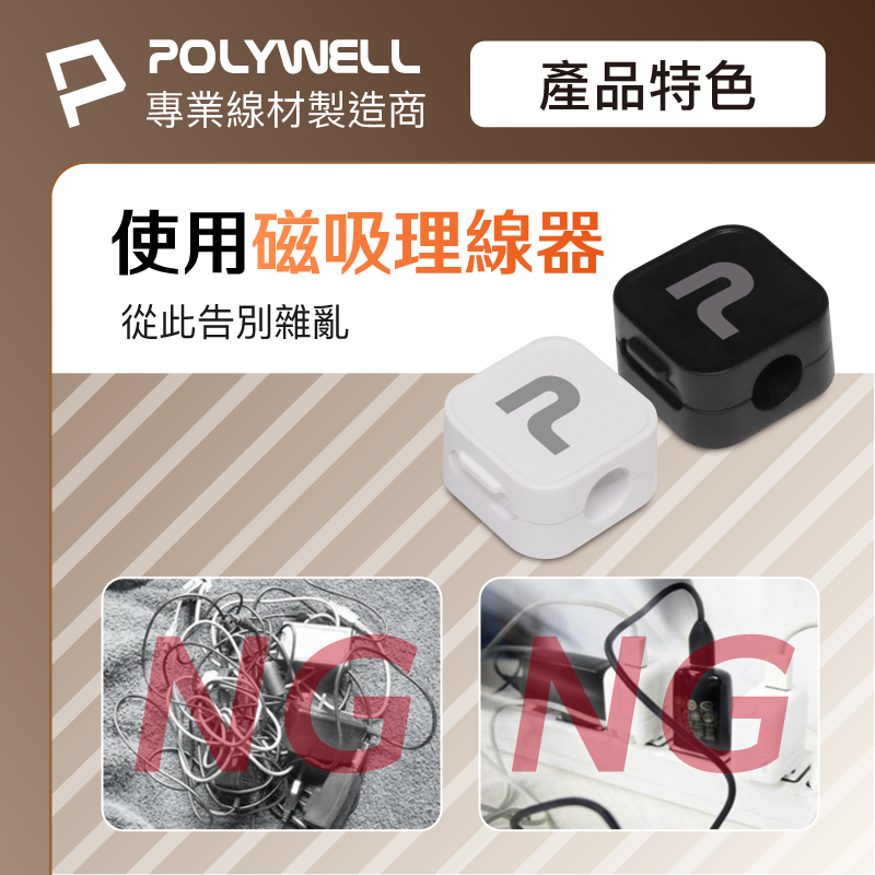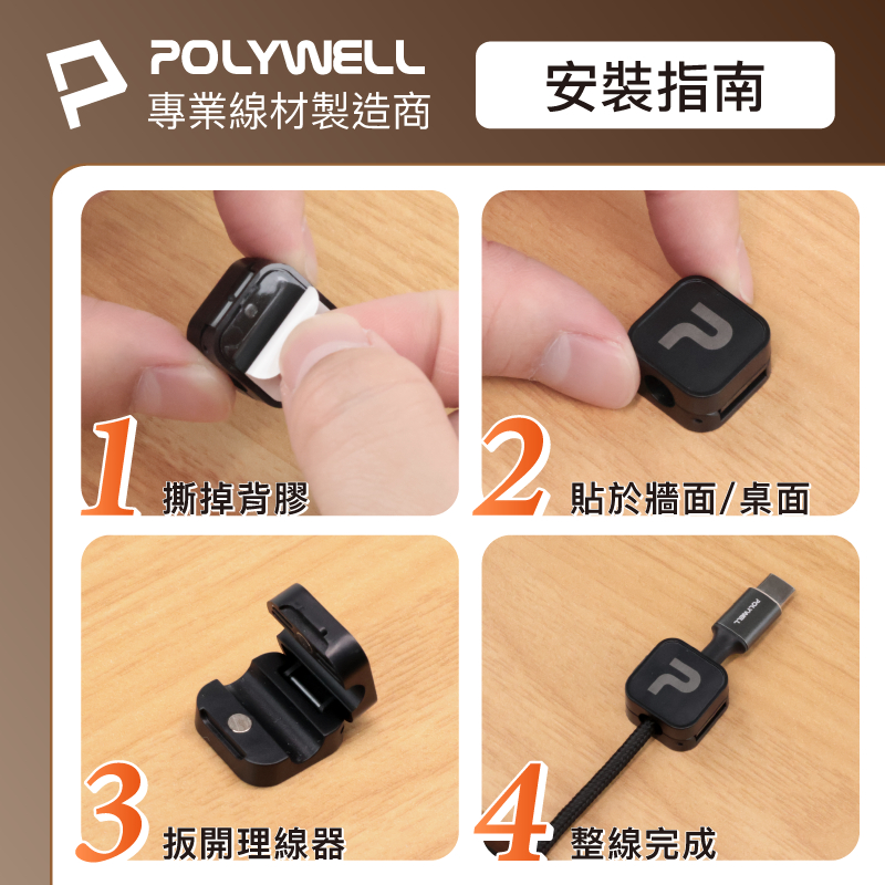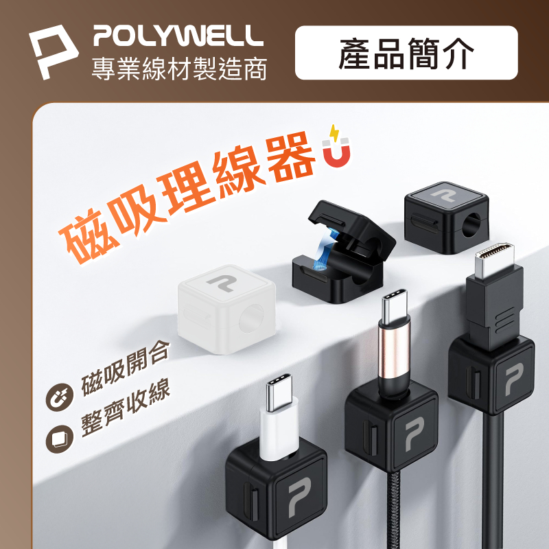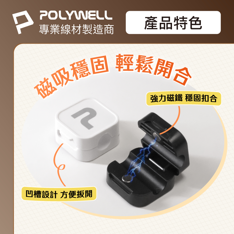POLYWELL 磁吸式理線器 電線固定器 可黏貼固定位置 適用7mm內充電線 傳輸線 寶利威爾 台灣現貨白色,1入|白色,3入|黑色,1入|黑色,3入OthersPOLYWELL寶利威爾官方旗艦店