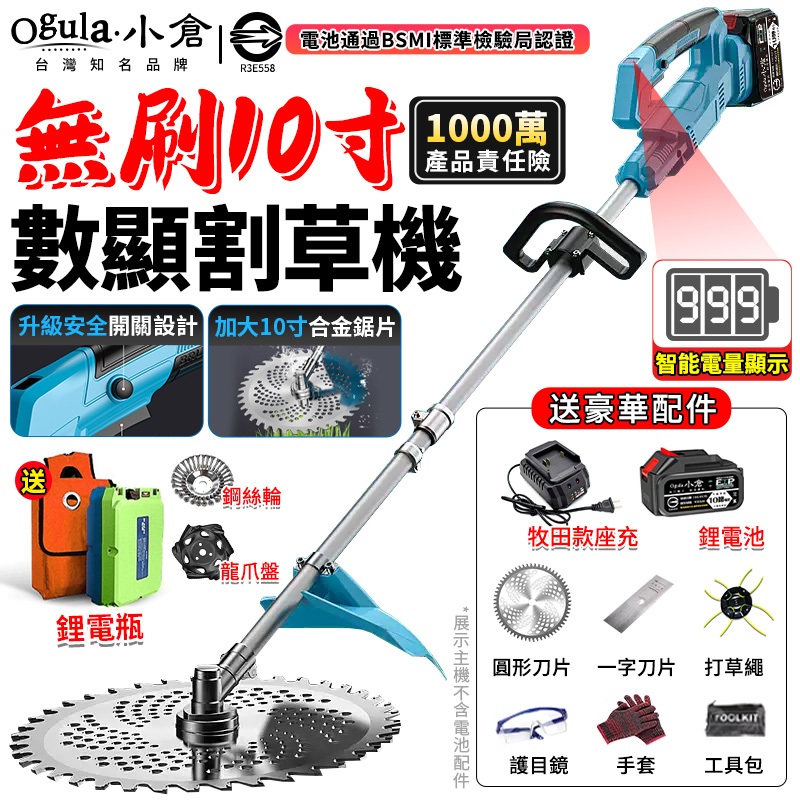 【Ogula小倉】割草機 除草機 無刷10寸電動割草機 後置電機 電量顯示 多功能鋰電除草機 打草機【10倍蝦幣回饋】10寸數顯款【裸機】後置無刷電機|10寸數顯款【十節一電】後置無刷電機|10寸數顯款【十節兩電】後置無刷電機|10寸數顯款【十五節一電】後置無刷電機|10寸數顯款【十五節兩電】後置無刷電機|10寸數顯款【背負式鋰電瓶】後置無刷電機Lawn MowersOgula小倉【官方旗艦店】