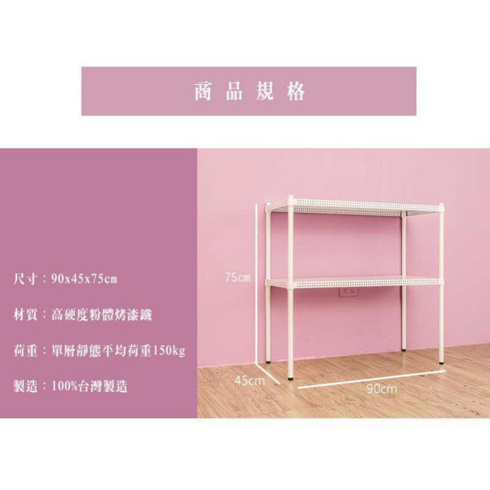 比架王 沖孔 90x45x75cm二層置物架(烤漆白) /收納架/波浪架/置物架/鐵架比架王 沖孔 90x45x75cm二層置物架(烤漆白) /收納架/波浪架/置物架/鐵架Shelves & RacksParity 比架王居家生活館