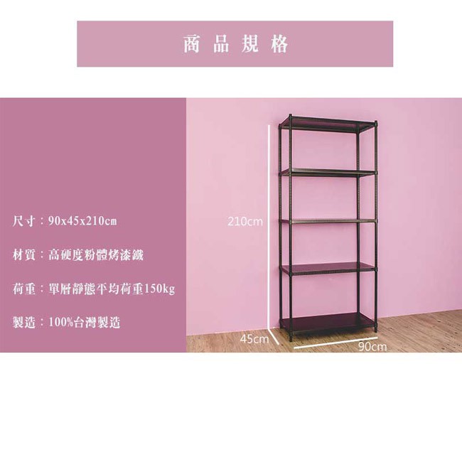 比架王 沖孔90x45x210cm五層置物架(烤漆黑) /收納架/置物架/波浪架/鐵架比架王 沖孔90x45x210cm五層置物架(烤漆黑) /收納架/置物架/波浪架/鐵架Shelves & RacksParity 比架王居家生活館