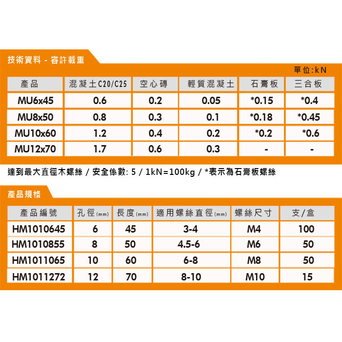 【Panrico 百利世】Mungo MU多用途塑料安卡錨栓 尼龍錨栓 塑膠塞子6x45mm 整盒 (100支)|8x50mm 整盒 (50支)|12x70mm 整盒 (15支)ToolsPanrico 百利世工具職人館