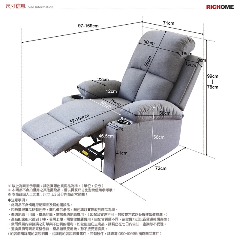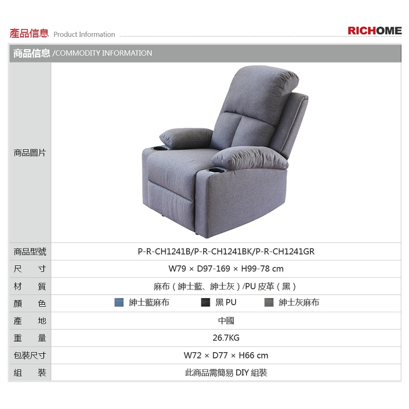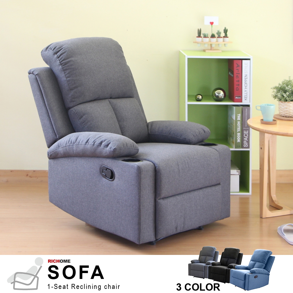 RICHOME CH1241 功能單人沙發椅(麻布材質)-2色 單人沙發 沙發 功能沙發 書房灰色(棉麻布)|藍色(棉麻布)|黑色(PU皮革)SofasRICHOME 生活家居