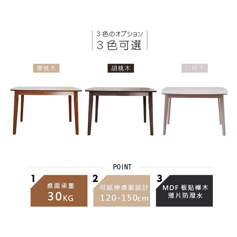 RICHOME 120-150CM可延伸餐桌 餐桌 延伸餐桌 實木桌腳 六人餐桌 TA405胡桃木|橡木色Desks & TablesRICHOME 生活家居