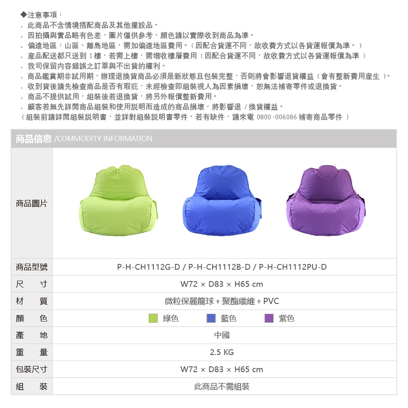 RICHOME CH1112 豆豆樂懶人沙發-3色 懶人沙發 休閒沙發藍色|綠色|紫色SofasRICHOME 生活家居