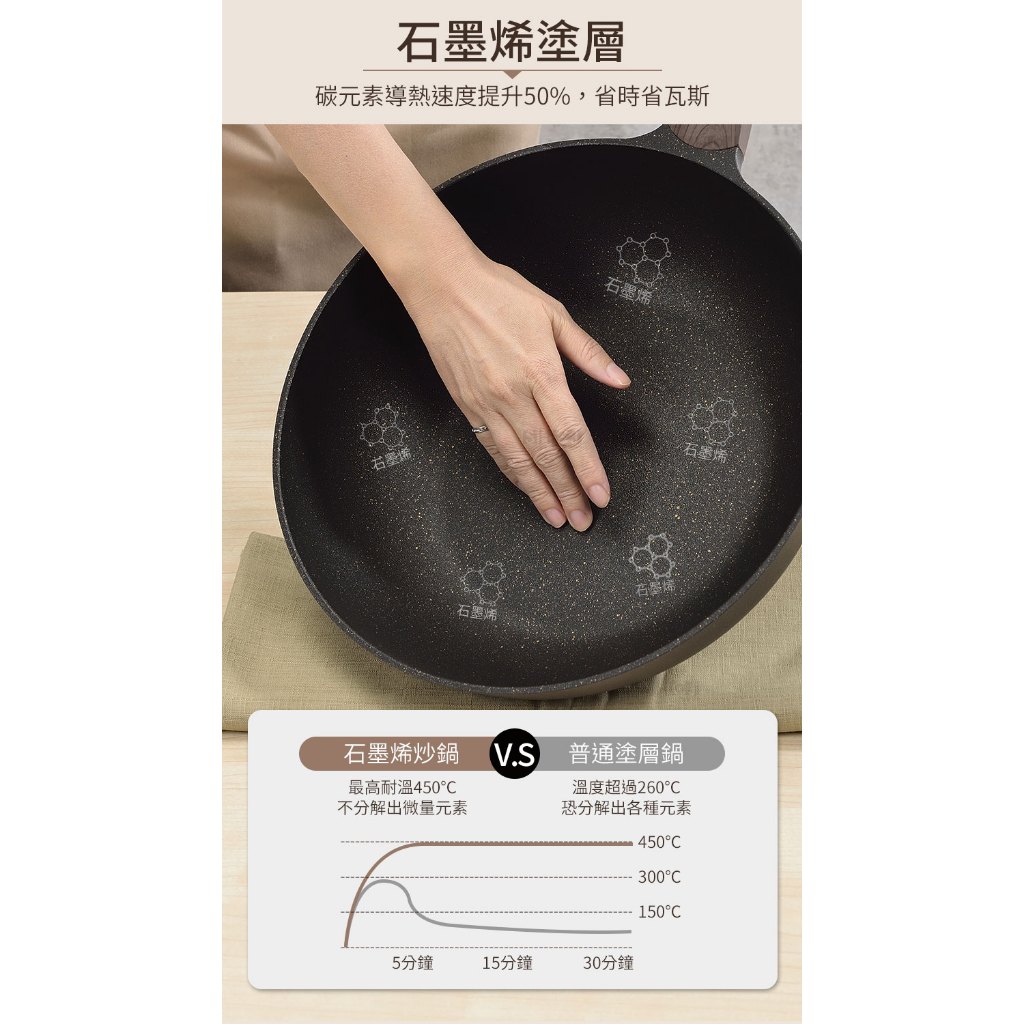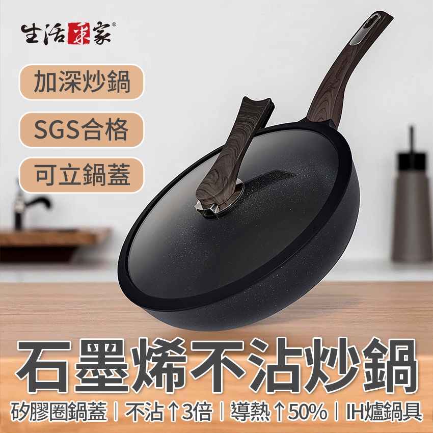 生活采家 石墨烯不沾炒鍋 32cm 深型導熱快 IH爐鍋 瓦斯爐鍋 少油煙不卡鍋 SGS檢驗合格 炒菜鍋 電磁爐鍋32cm 有蓋|32cm 無蓋PansSHCJ生活采家-石墨烯炒鍋熱銷NO.1/給皂機/淨水過濾/家用收納
