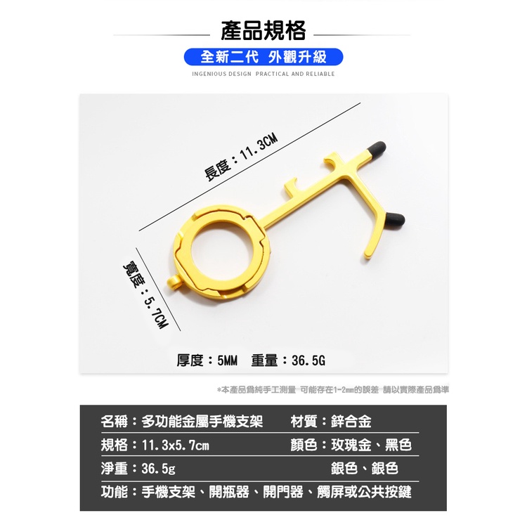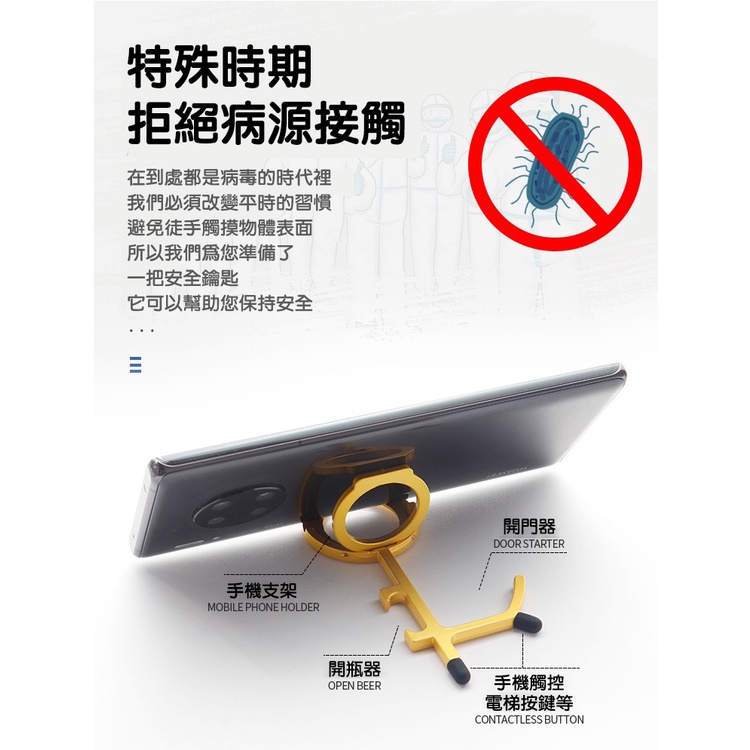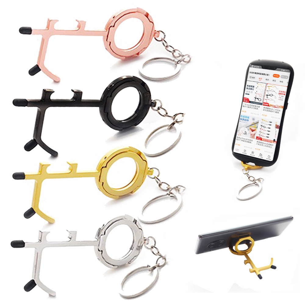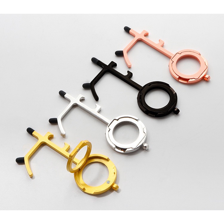 【SHOWHAN】鑰匙扣金屬多功能開瓶器開門器手機支架 無接觸開門器 防護按鈕按電梯 防護隔離安全小神器(福利品)瑕疵如圖片-隨機色|正常品-玫瑰金|正常品-黑色|正常品-銀色Can & Bottle OpenersSHOWHAN手機周邊生活用品旗艦店