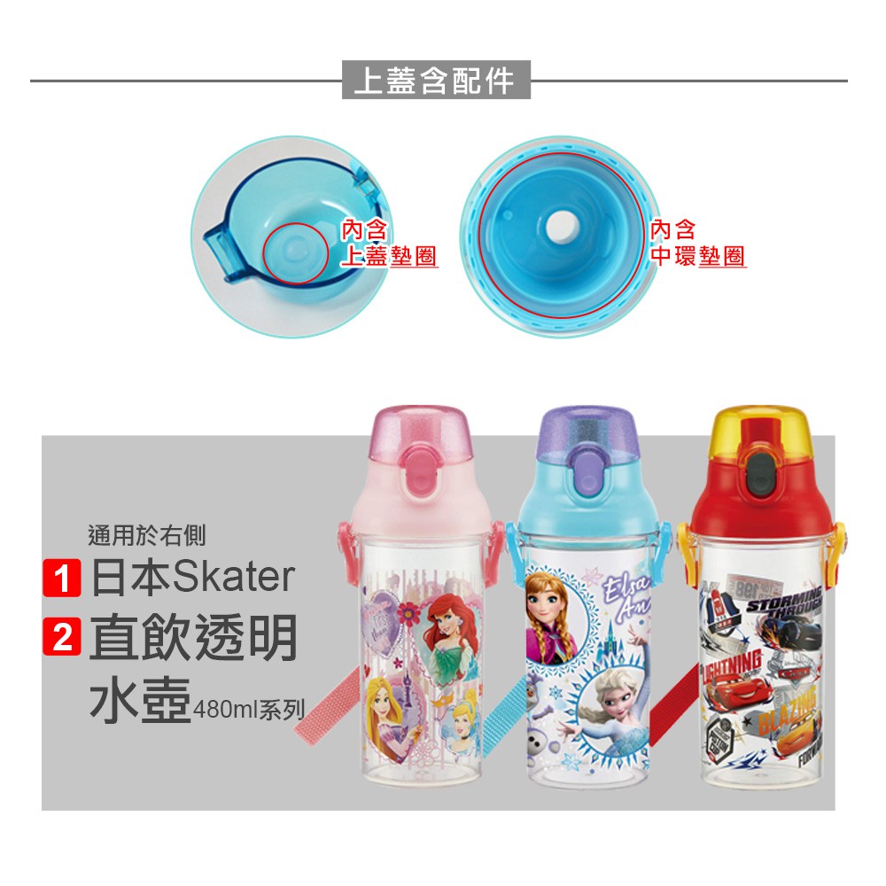 Skater直飲透明水壺 (480ml) 專用上蓋+墊圈藍|粉|紅Water Bottles & AccessoriesSkater