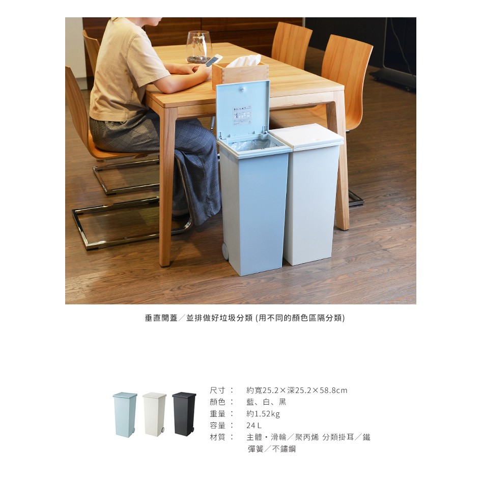 【日本岩谷Iwatani】方形可分類手壓彈蓋式垃圾桶(附輪)-24L白|黑|藍Trash & Recycling Binsnicegoods 生活好東西