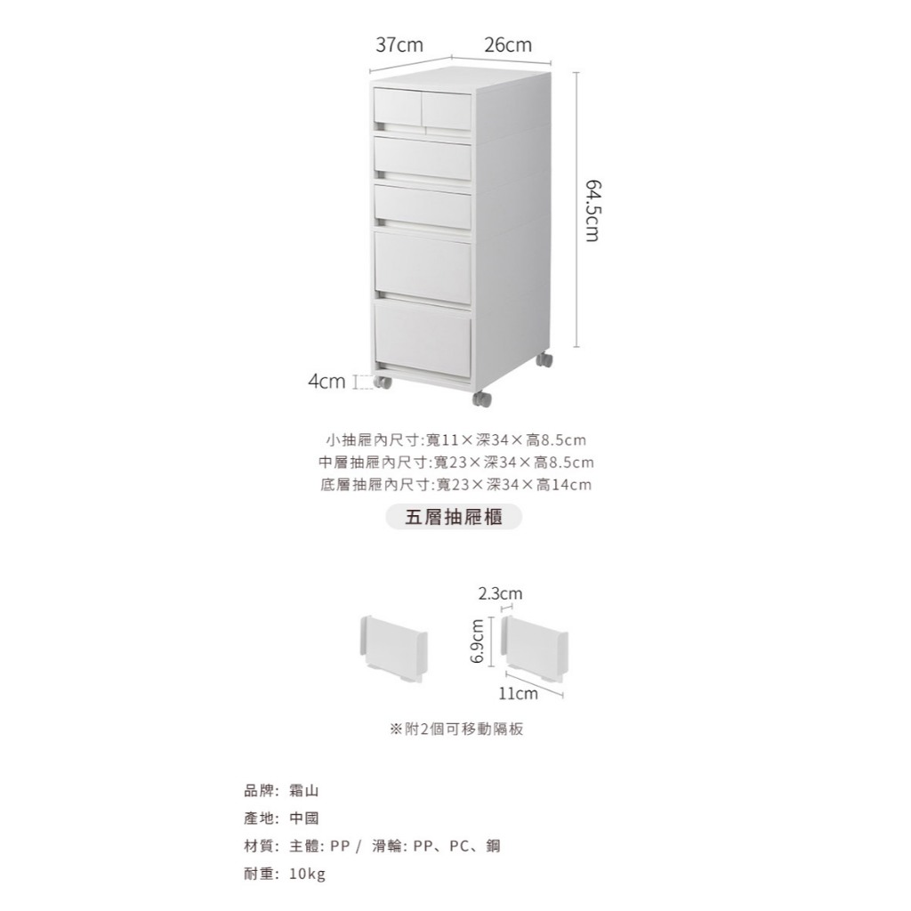 【日本霜山】無印風移動式五層抽屜置物收納櫃(附分類隔板)