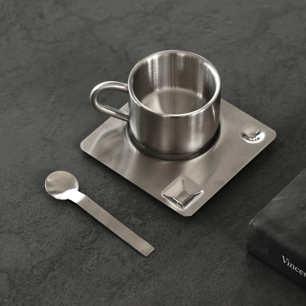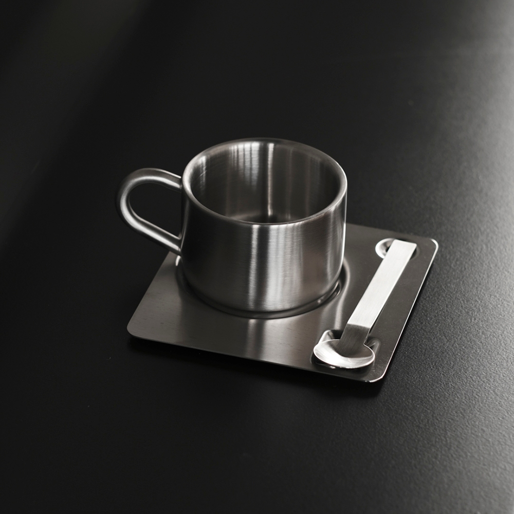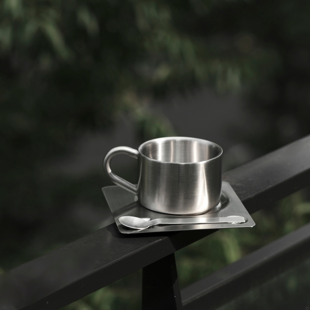 mooin Kafi 銀鏡咖啡杯碟 304不鏽鋼杯 質感生活 咖啡杯 居家用品 不鏽鋼杯304不鏽鋼Cutleriesmooin 居家生活選品