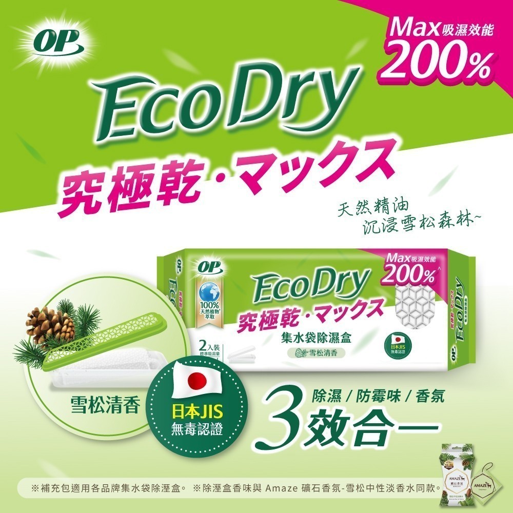 【現貨免等】【OP】Ecodry集水袋除濕盒-雪松清香 多入組 原廠直送補充包-1包(3入裝)|組合-2盒+2補|組合-1盒+2補|盒裝-1盒(2入裝)OthersOP家事家用清潔用品 領導品牌 官方旗艦店