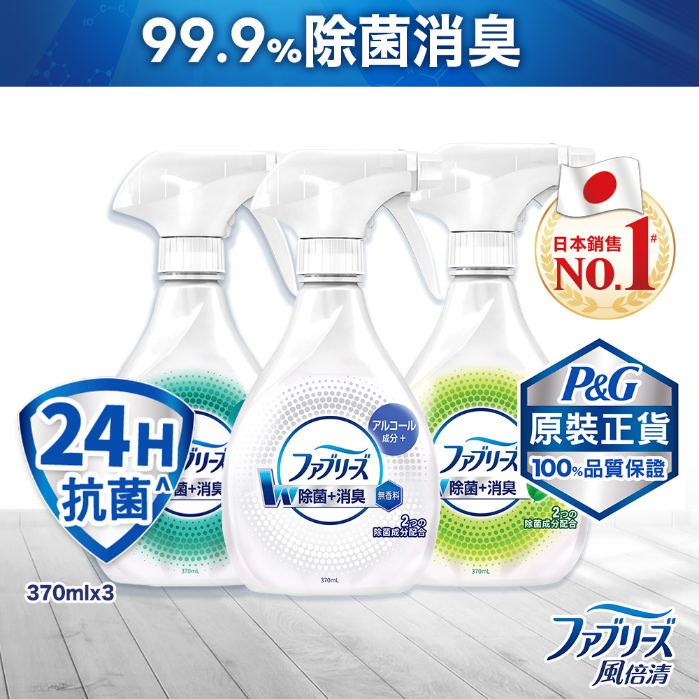 【日本風倍清】除菌·消臭/除臭 衣物/織物噴霧 370mlx3瓶 任選 (高效除菌/綠茶清香/無香型/無香 酒精+)高效除菌+綠茶清香+無香型|高效除菌+綠茶清香+無香 酒精+|高效除菌+無香型+無香 酒精+|綠茶清香+無香型+無香 酒精+|高效除菌370ml x3|綠茶清香370ml x3|無香型370ml x3|無香 酒精+ 370ml x3Laundry CareP&G寶僑旗艦店-幫寶適/一級幫/超薄乾爽/液體衛生棉/Ariel/官方旗艦店