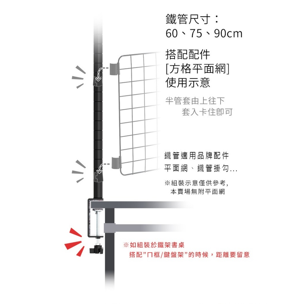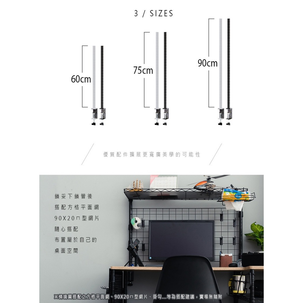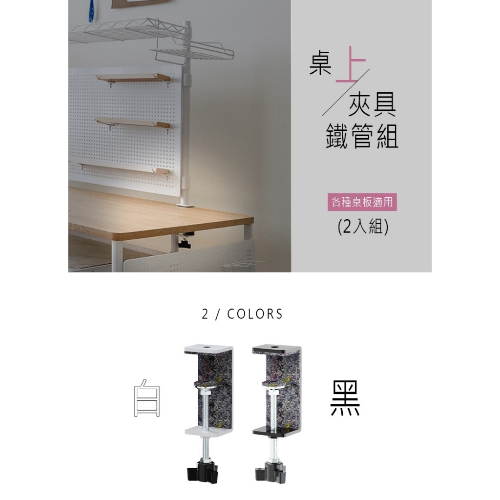 比架王 桌上立面[夾具+鐵管]_2入/組 兩色可選 適用桌板厚度18mm-65mm 桌面/擴充/立面/ㄇ網/平面網適用白色,75cm|白色,90cm|黑色,單夾具|黑色,60cm|黑色,75cm|黑色,90cm|白色,單夾具|白色,60cmDesk OrganizersParity 比架王居家生活館
