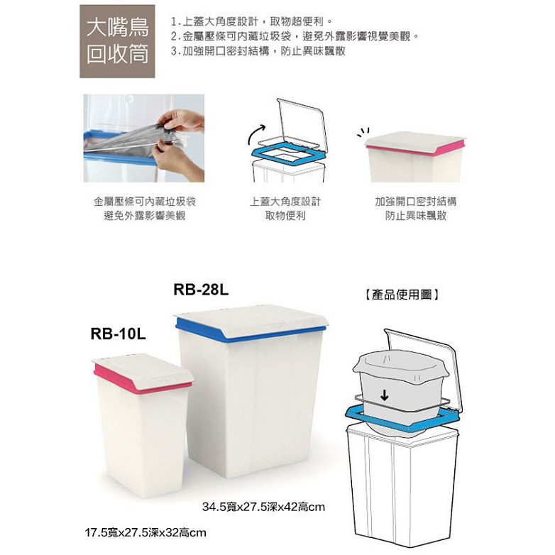完美主義|大嘴鳥回收桶10L/28L 樹德MIT台灣製 收納筒 收納箱 回收桶 垃圾桶【R0127 /R0128】