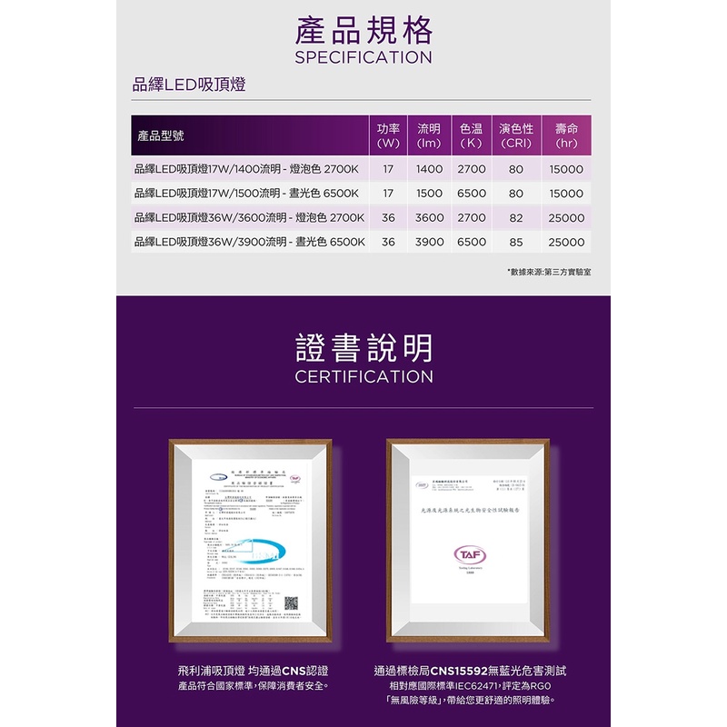 Philips 飛利浦 品繹 LED吸頂燈 36W 晝光色6500K 燈泡色2700 (PA014/PA015)36W 燈泡色2700K PA014|36W 晝光色6500K PA015PHILIPS 飛利浦照明旗艦館
