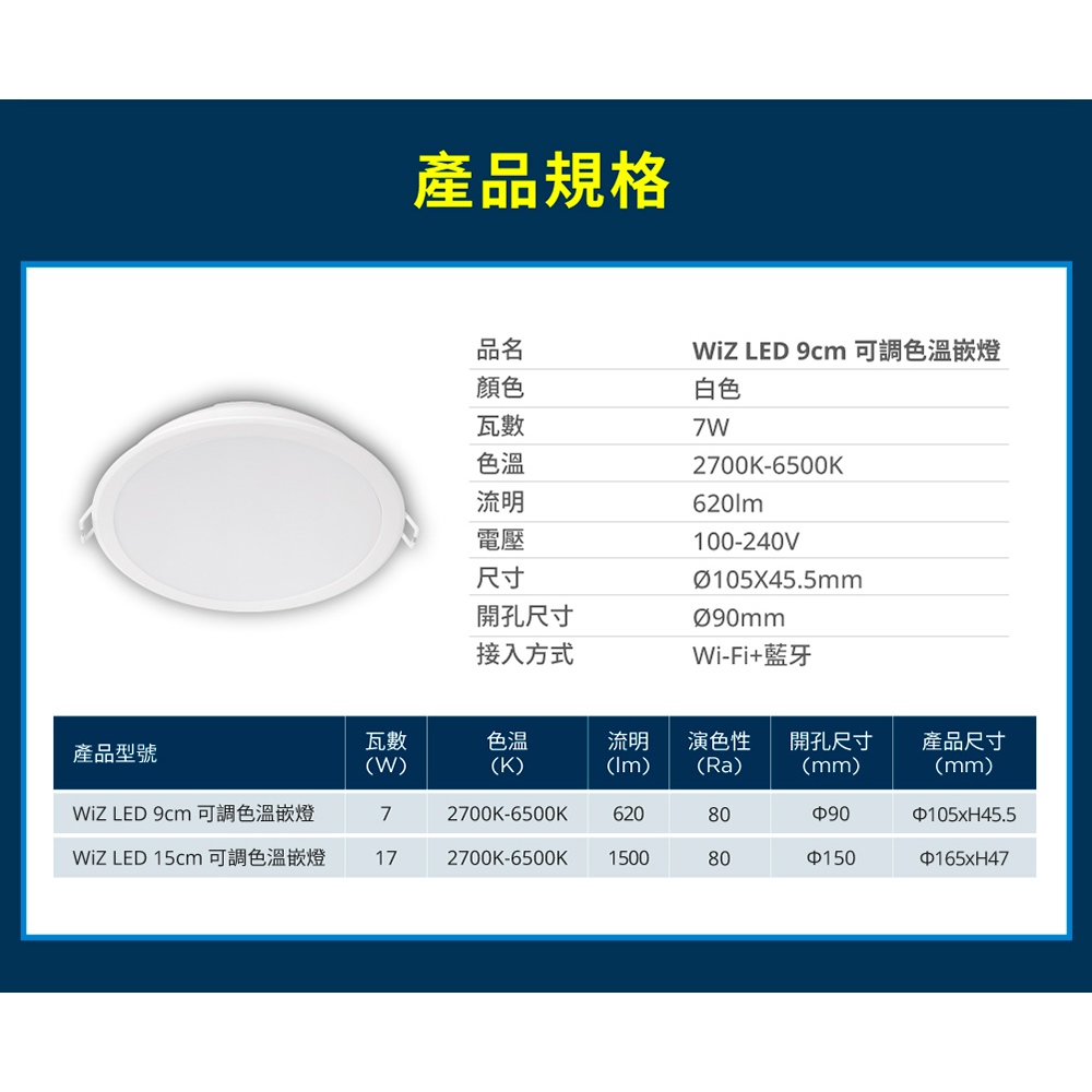 WiZ LED 9cm 可調色溫嵌燈 崁燈 3入 (PW021)WiZ LED 9cm 可調色溫嵌燈 崁燈 3入 (PW021)PHILIPS 飛利浦照明旗艦館