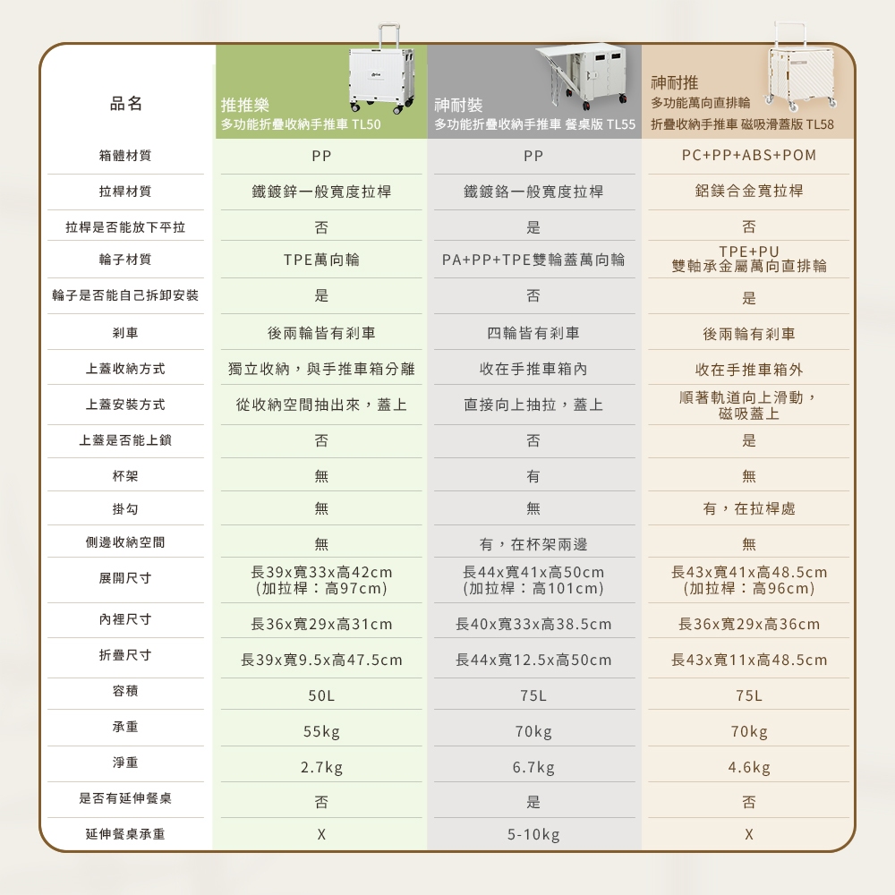 【Arlink雅聯】神奈推(神耐推) 貴婦級75L多功能萬向直排輪 折疊收納手推車|磁吸滑蓋版 露營推車 購物車 爬梯輪夢幻粉,TL58手推車|夢幻粉,TL58手推車+一組爬梯輪|文青綠,TL58手推車|文青綠,TL58手推車+一組爬梯輪|質感白,TL58手推車|質感白,TL58手推車+一組爬梯輪TrolliesPhilo飛樂|arlink雅聯【官方旗艦店】