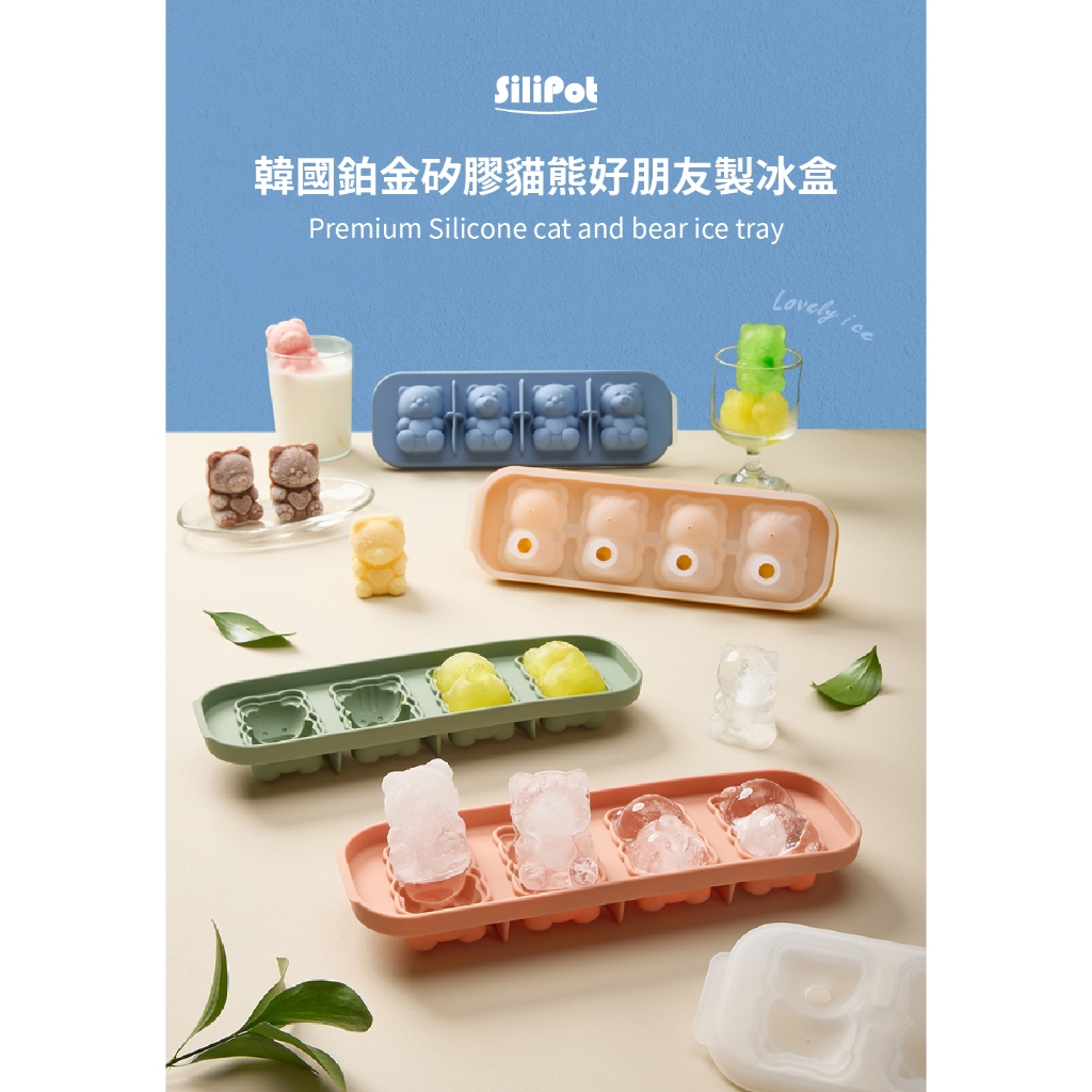 【韓國 SILIPOT】鉑金矽膠貓熊好朋友製冰盒(冰磚、冰塊)莫蘭迪藍|抹茶綠OthersPomier朴蜜兒