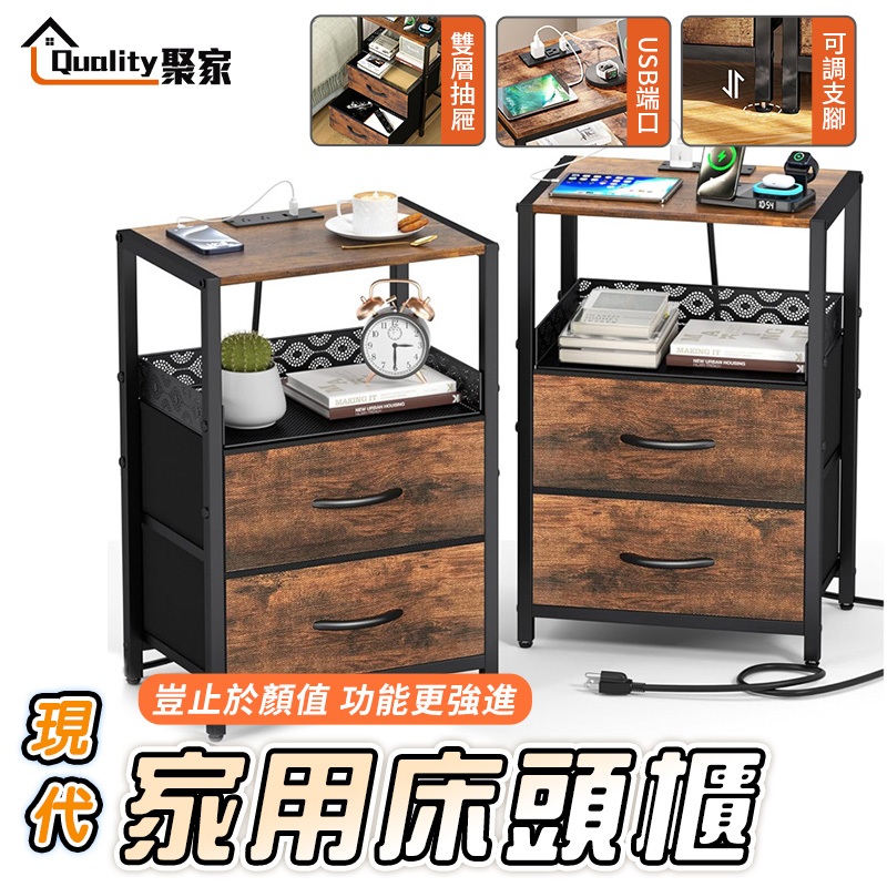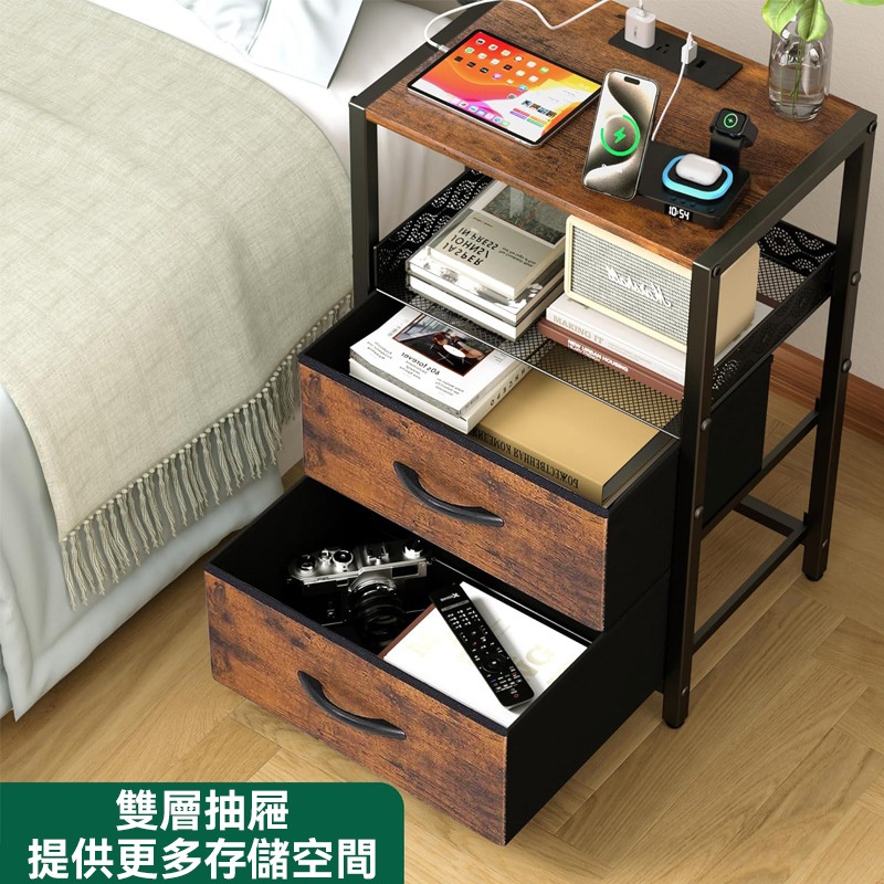 【Quality 聚家】床頭櫃 帶抽屜 茶几 邊幾 邊桌 帶USB端口 插座 3層收納置物架 櫃子 【10%蝦幣回饋】仿古色 雙抽 40*28*60CM|黑色 雙抽 40*28*60CMShelves & RacksQuality 聚家【官方旗艦店】