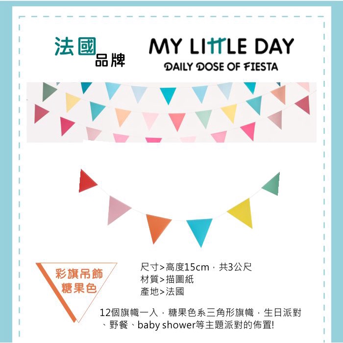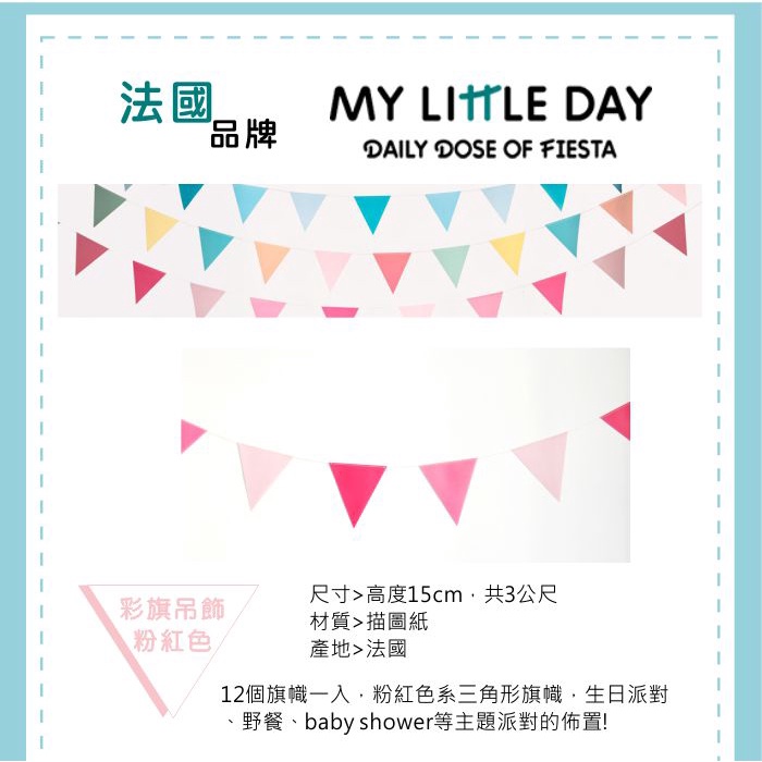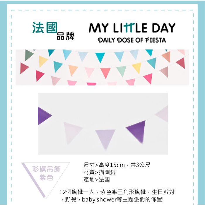 法國My Little Day 彩色吊旗(派對用品)(Songbaby)(福利品)紫色|粉紅色Wooden ClipsSongBaby 親子生活美學館