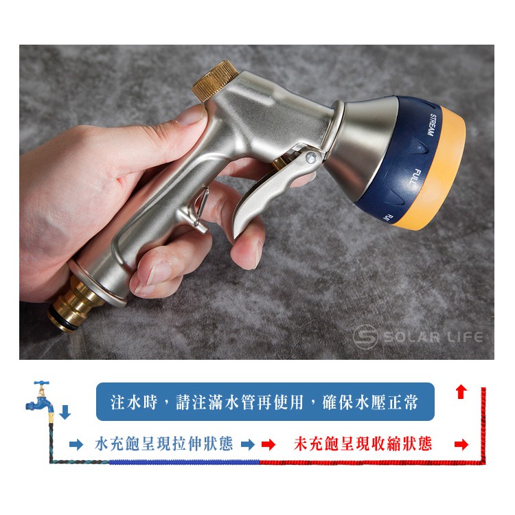 索樂生活 彈力伸縮加厚防爆水管 3倍伸縮水管 高壓式噴水槍 洗車 水槍 澆花 園藝 伸縮 水管 清潔 萬用接頭 泡沫壺伸縮水管5-15M|伸縮水管7-22M|鋅合金水槍噴頭|噴槍泡沫壺100mlToolsSolar Life 索樂生活 | Keith鎧斯鈦台灣總代理